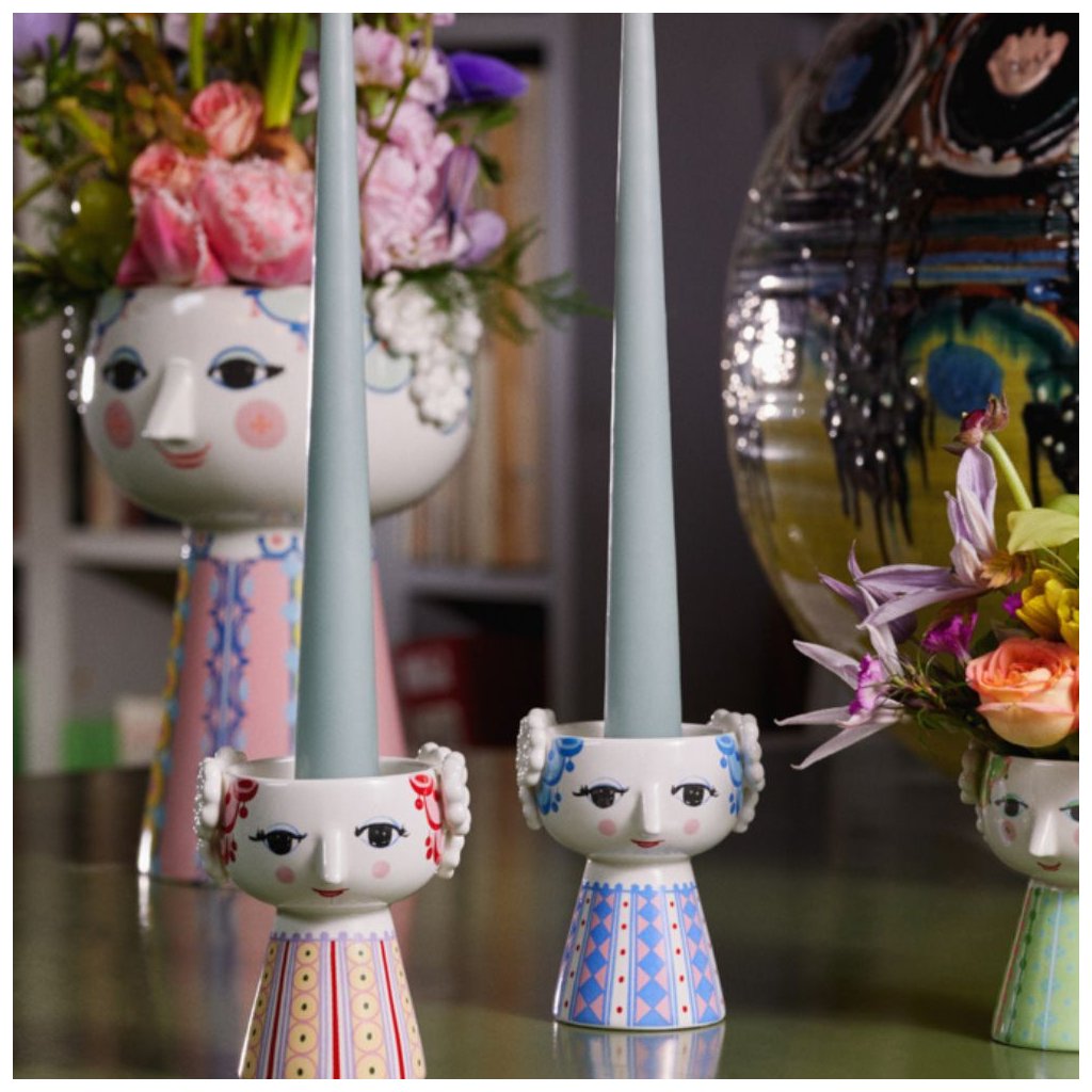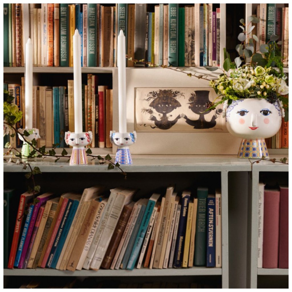 Stompkaarshouder EVA 9 cm, blauw, keramiek, Bjørn Wiinblad
