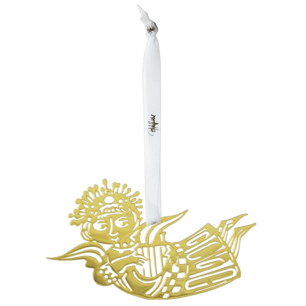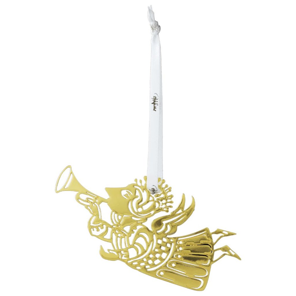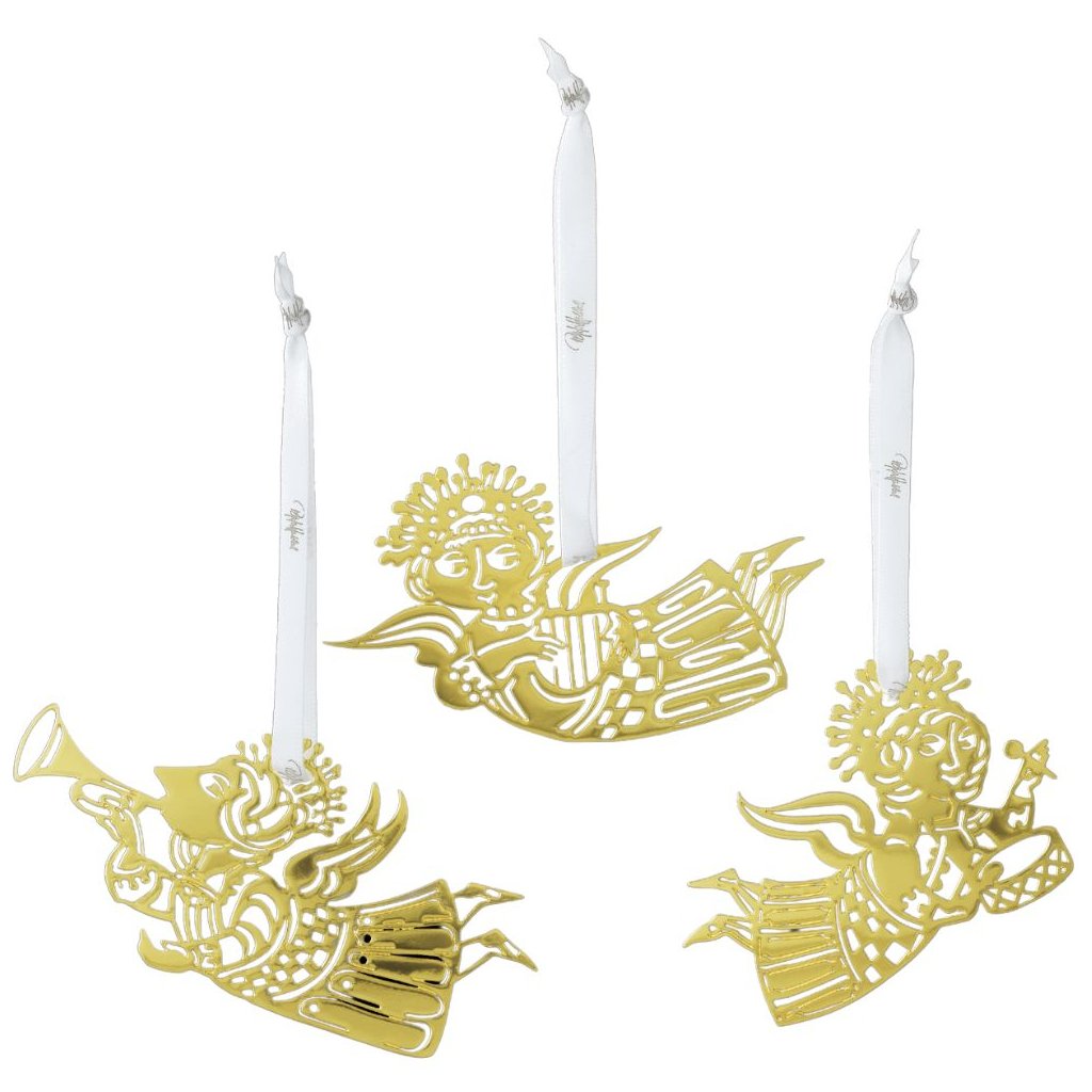 Kerstboomversiering MUSIC ANGEL SILHOUETTE S 6 cm, SET VAN 3, goud, roestvrij staal, Bjørn Wiinblad