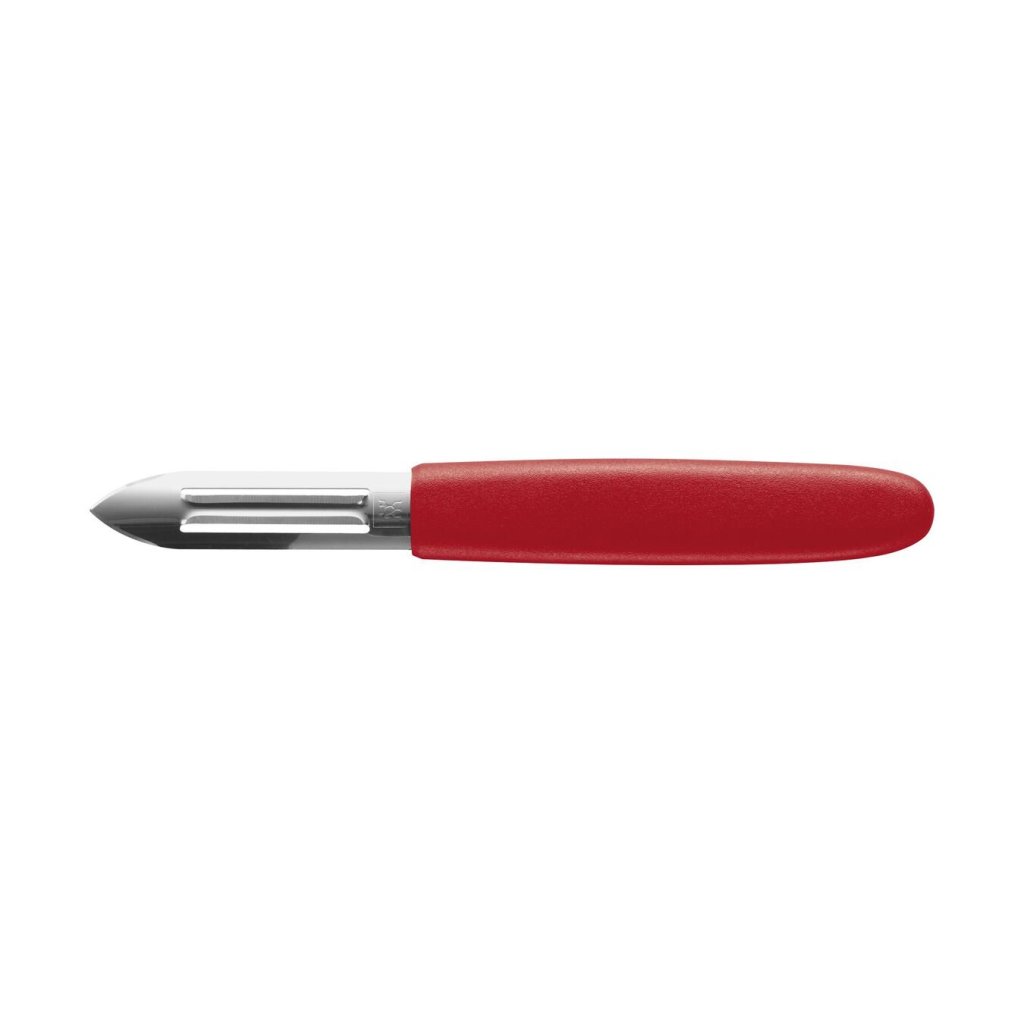 De set uit de Twin Grip collectie van Zwilling bestaat uit een keukenschaar, een groenteschiller en een schilmesje met een kort recht lemmet van 9 cm, dat geschikt is voor het schillen, bijsnijden en snijden van kleinere stukken fruit en groenten. De dunschiller is ideaal voor aardappelen en andere groenten en fruit. Het mes is gesmeed uit één stuk staal, dus zonder lasnaden en zonder verbindingen. Het is perfect uitgebalanceerd en veilig en gemakkelijk om mee te werken. Het blad is gevriesdroogd. Het heeft een langdurige scherpte die gemakkelijk kan worden hersteld door handmatig slijpen, polijsten en lasercontrole.
