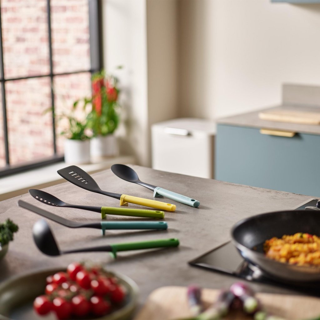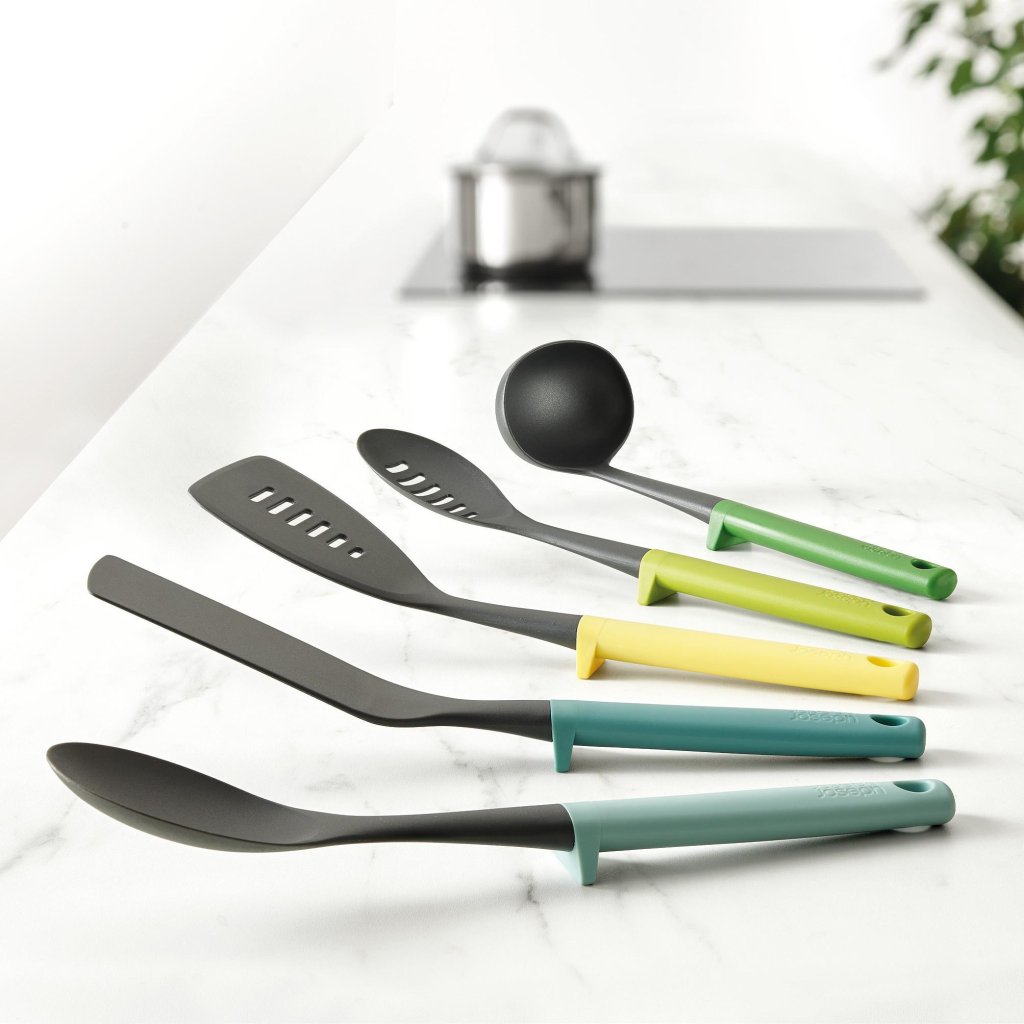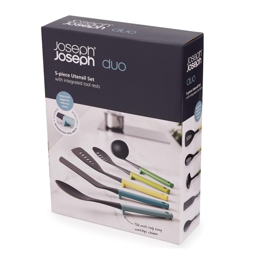 - De vijfdelige keukengerei set van Joseph Joseph DUO OPAL is een praktische en elegante oplossing voor dagelijks koken in een moderne keuken.