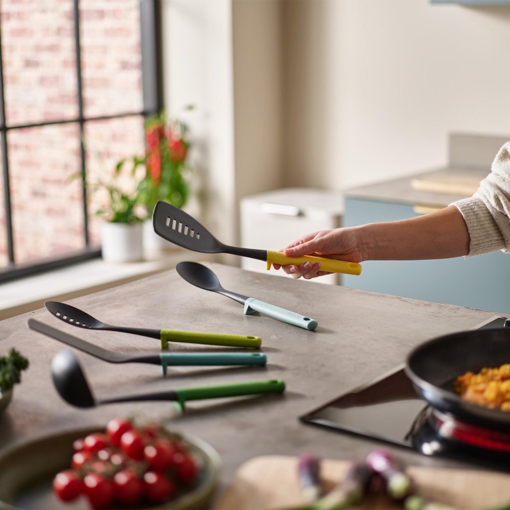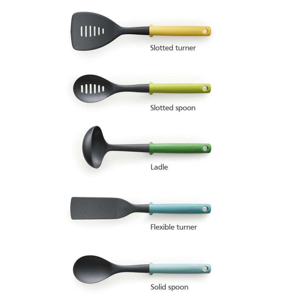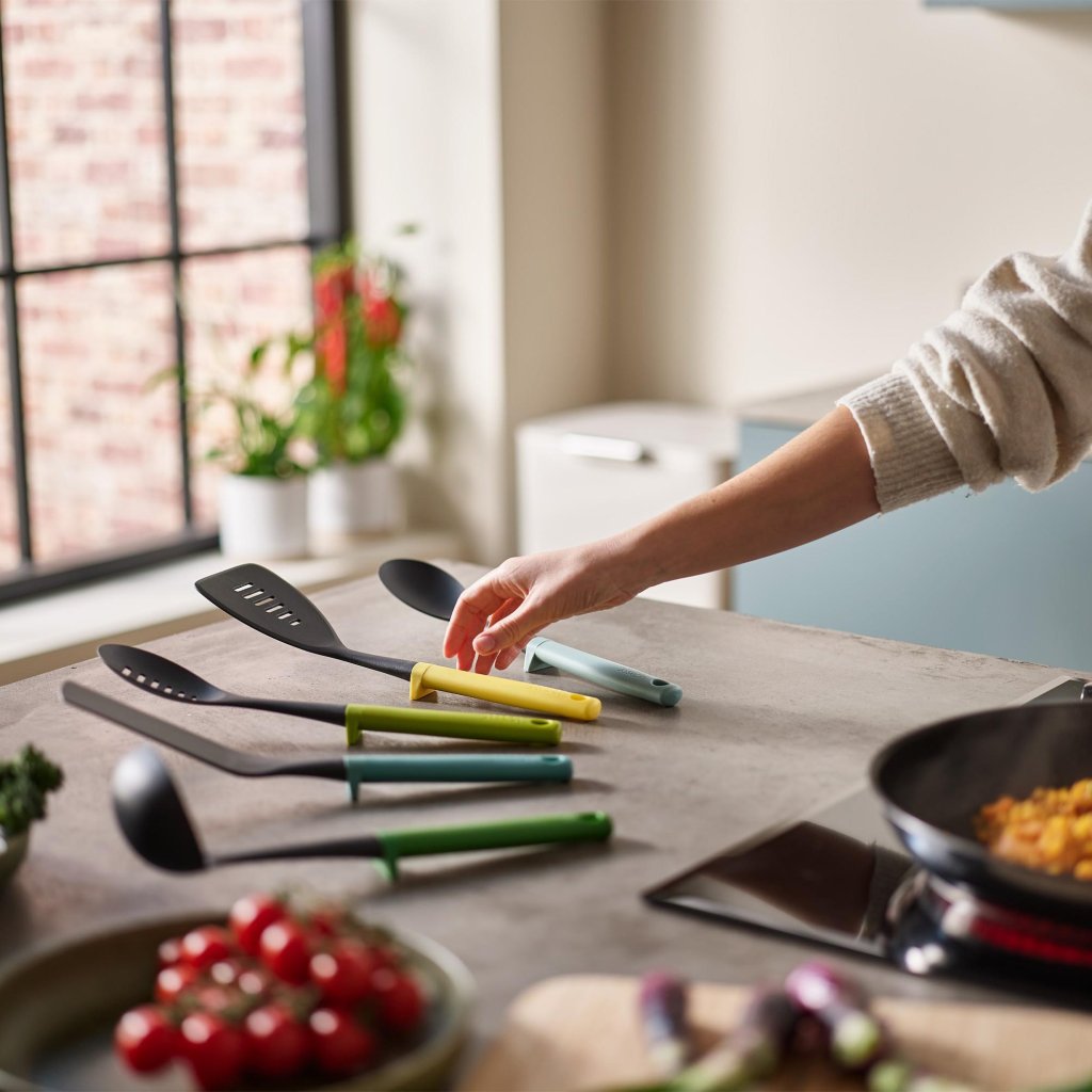 - De vijfdelige keukengerei set van Joseph Joseph DUO OPAL is een praktische en elegante oplossing voor dagelijks koken in een moderne keuken.