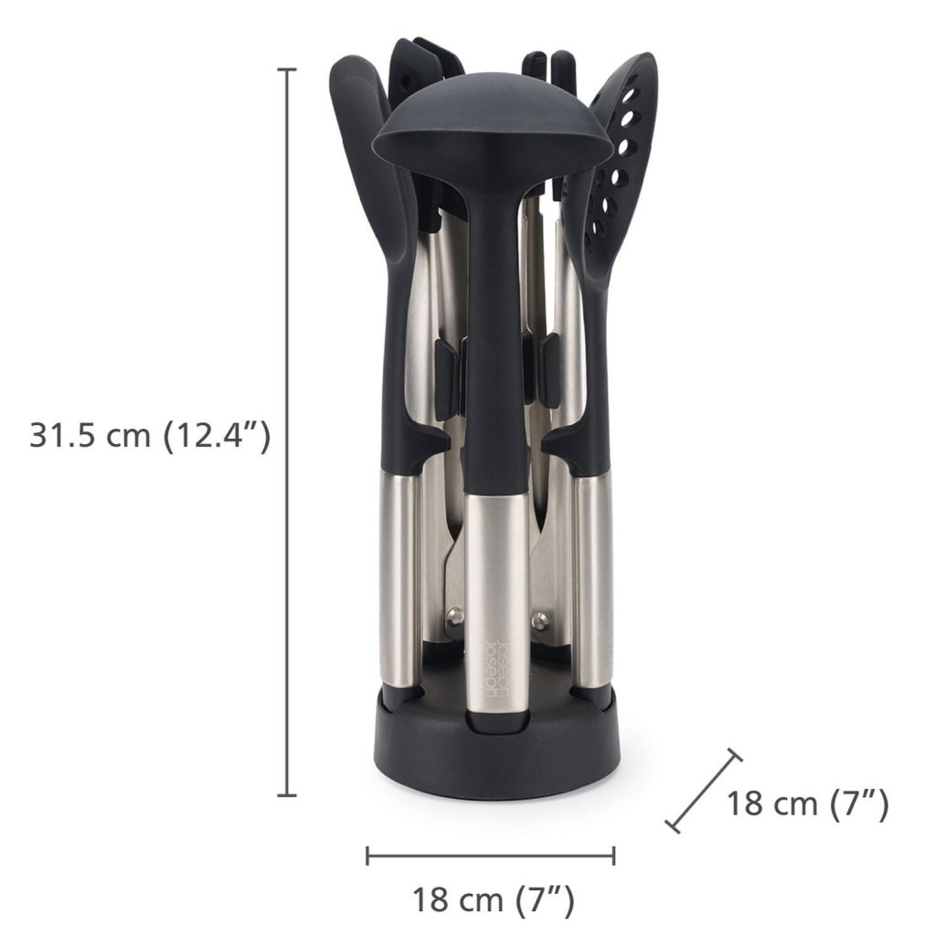 - De compacte standaard maakt het praktisch opbergen van al het keukengerei op één plek mogelijk, zodat je het tijdens het koken snel kunt pakken zonder in lades te hoeven zoeken.