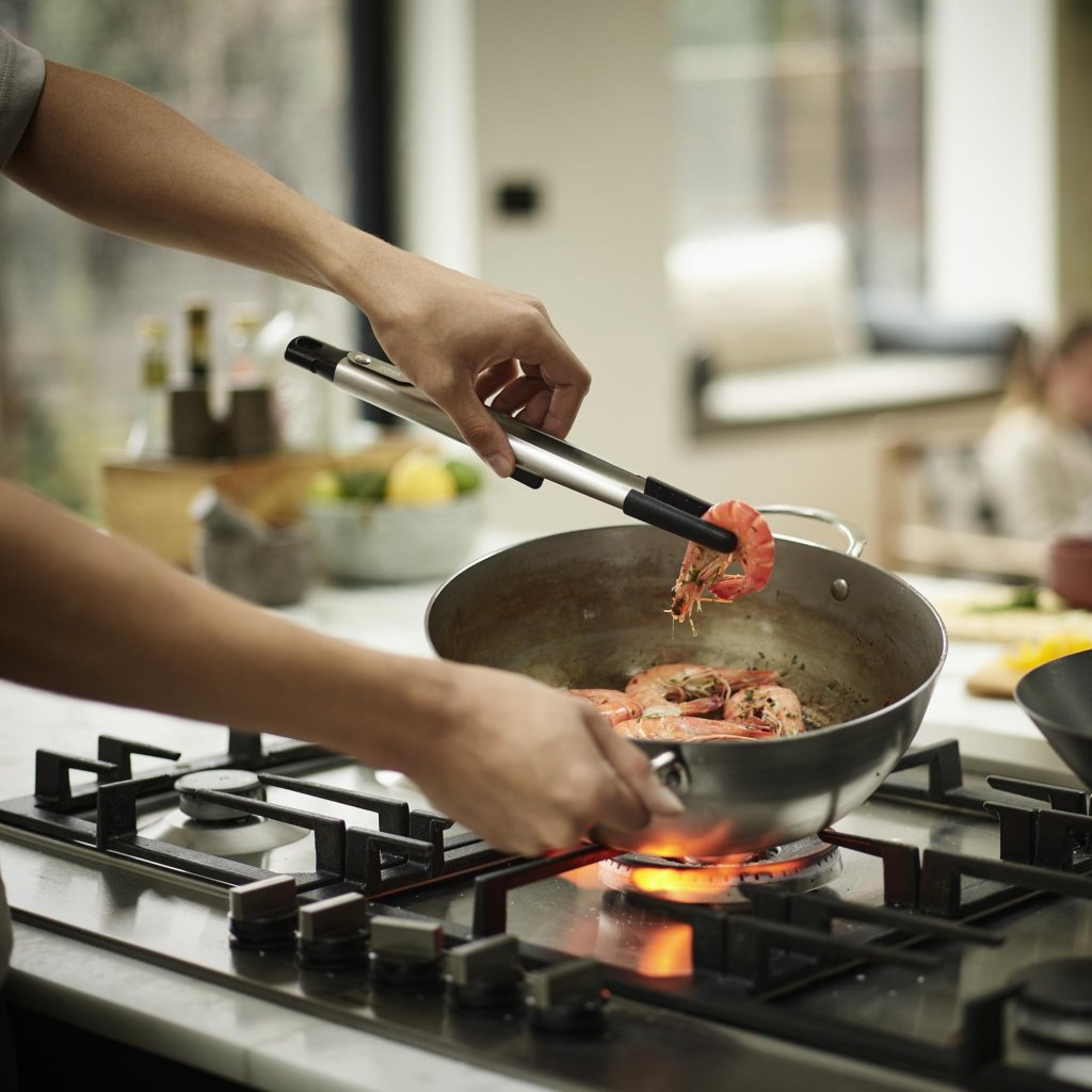 - Handgrepen van roestvrij staal geven het keukengerei stevigheid, duurzaamheid en een moderne uitstraling die past bij de hedendaagse keuken.