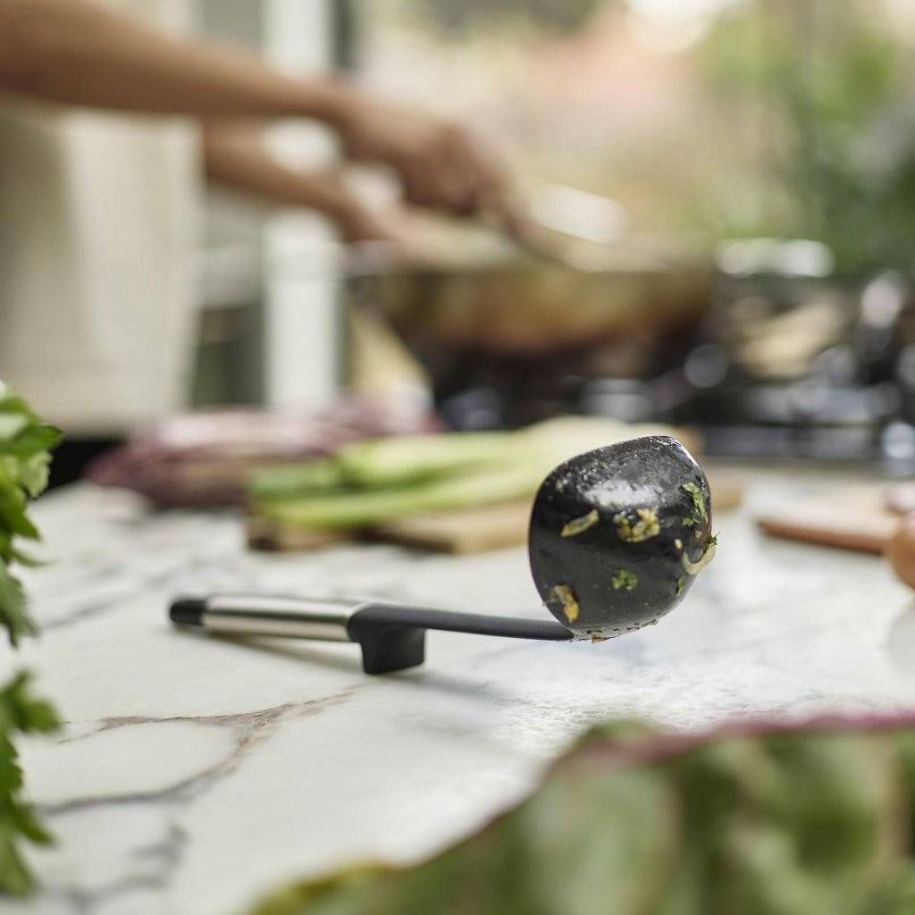 - Handgrepen van roestvrij staal geven het keukengerei stevigheid, duurzaamheid en een moderne uitstraling die past bij de hedendaagse keuken.