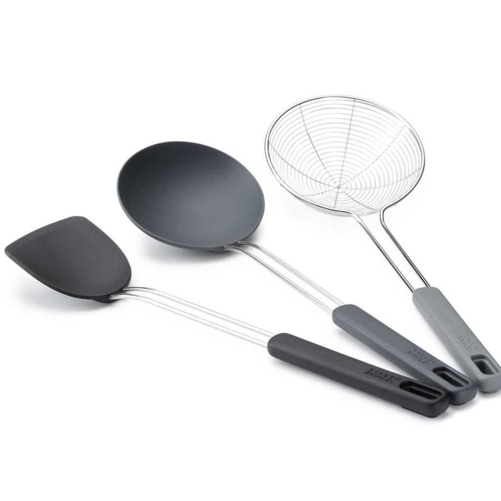 - De Joseph Joseph NEST FUSION WOK keukenset biedt drie praktische gereedschappen voor het koken in een wok in een compact ontwerp dat ruimte bespaart in de lade en op het aanrecht.