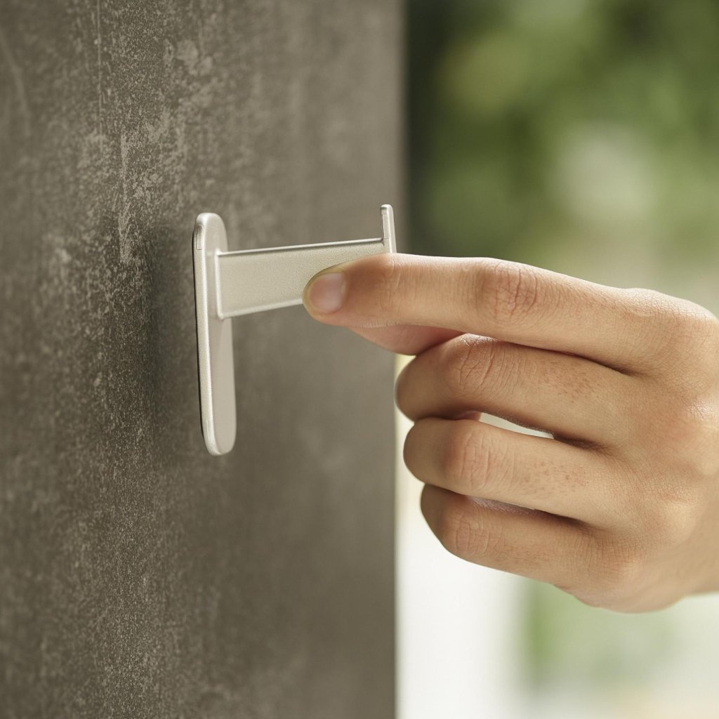 - De verpakking bevat ook een muurhaak, waarmee de set kan worden opgehangen en altijd gemakkelijk toegankelijk is.
