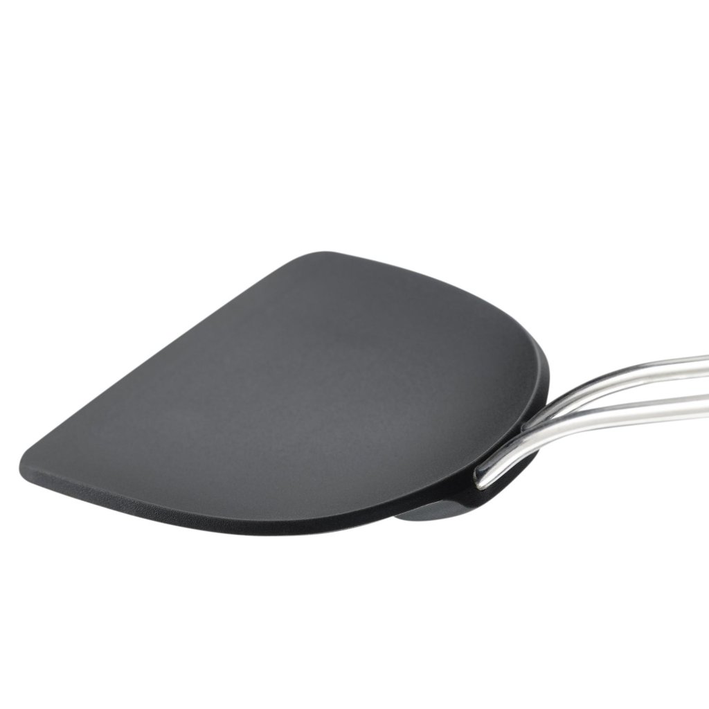 - Het materiaal is tevens zacht voor antiaanbaklagen van pannen, zodat er geen risico is op krassen bij het roeren of omdraaien van gerechten.