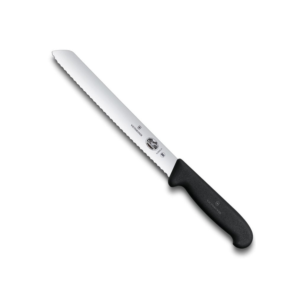 Keukenbroodmes met 21 cm lang gegolfd lemmet. Het handvat heeft een ergonomische vorm, zodat het werken met het mes zeer comfortabel is. Licht in de hand, maar precies om te snijden - dit zijn de Victorinox keukenmessen met kunststof handvat.