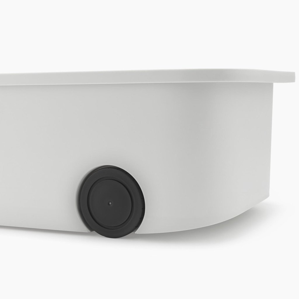- Wieltjes aan de onderkant zorgen voor een soepele beweging van de organizer over de plank, zodat deze ook uit diepere kasten gemakkelijk kan worden uitgeschoven.