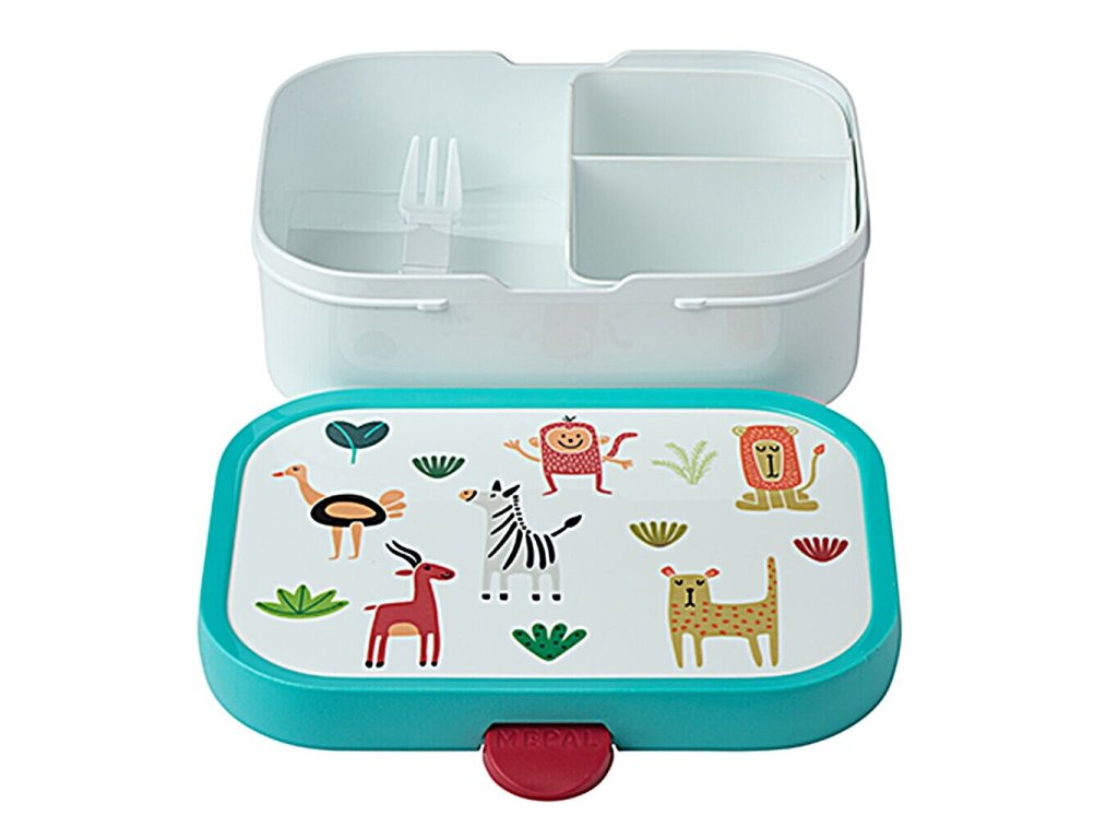 - kinderlunchtrommel CAMPUS met een motief van dieren en bloemen is een ideale metgezel voor schoolmaaltijden en uitstapjes