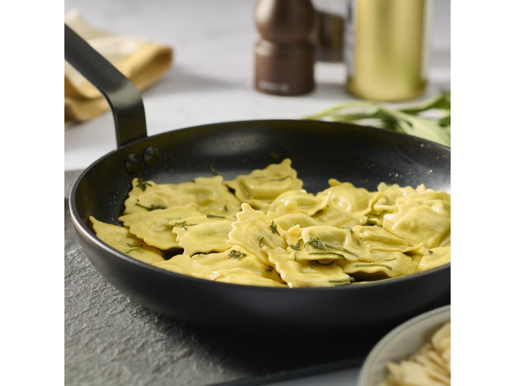 - de matzwarte buitenkant geeft de pan een elegante uitstraling die in elke moderne keuken past