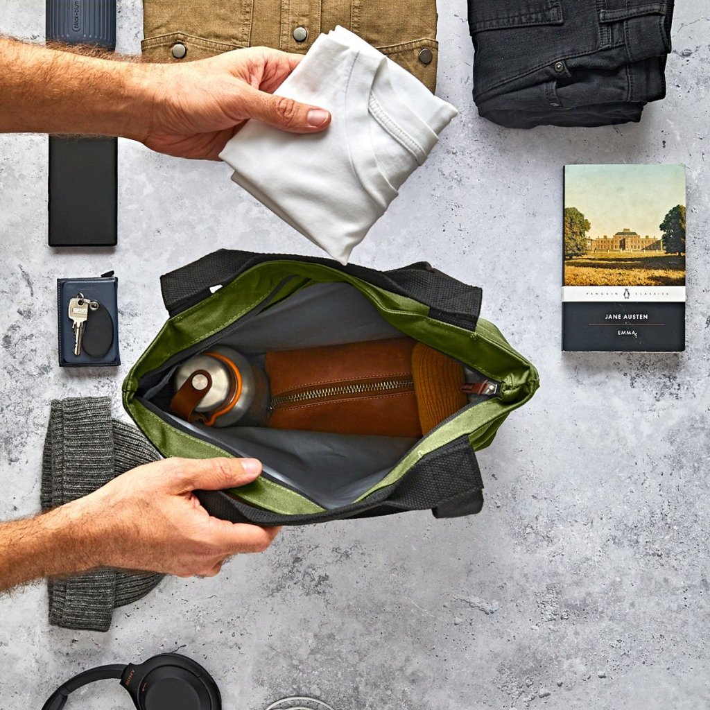 - stijlvolle mosgroene thermische tas die voedsel de hele dag vers en beschermd houdt, op het werk, op school of onderweg