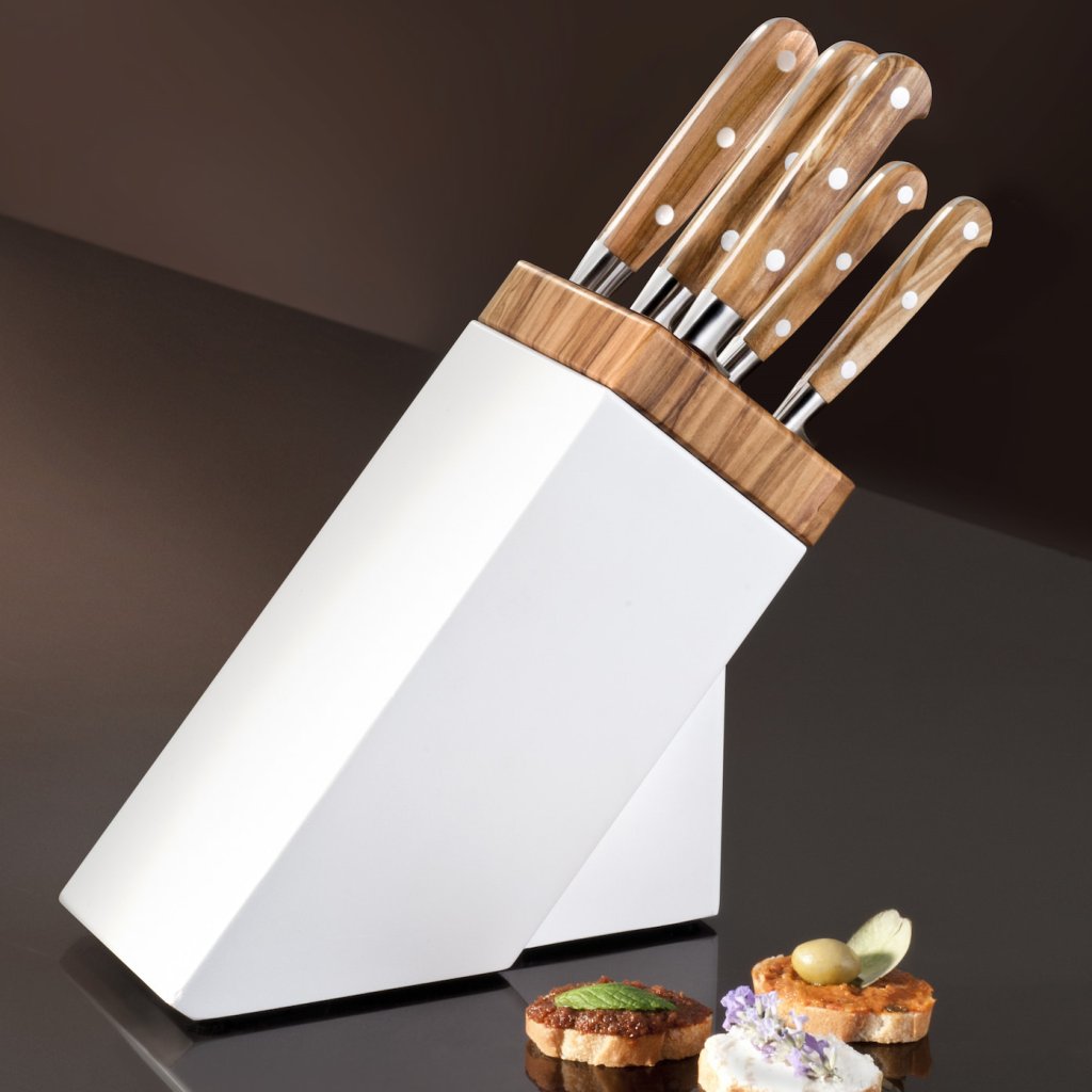 - ergonomisch gevormd handvat van olijfhout geeft het mes een comfortabele grip en een aantrekkelijke natuurlijke uitstraling