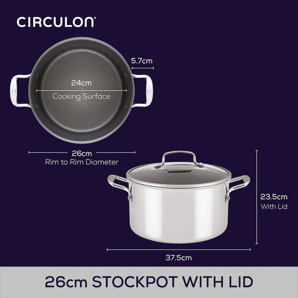 - grote kookpan Circulon SCRATCHDEFENSE C1 met een inhoud van 7,6 liter is ideaal voor het bereiden van soepen, pasta of chili voor het hele gezin