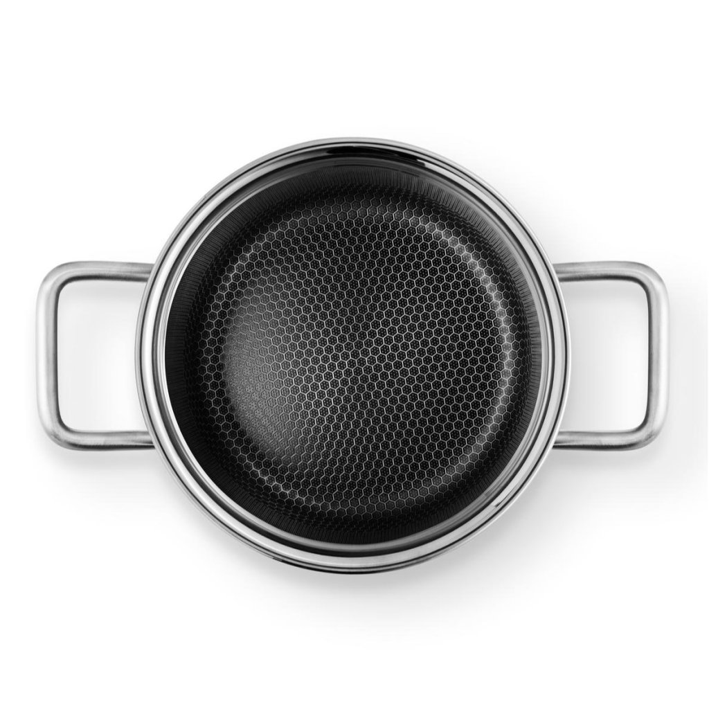 - extreem duurzaam oppervlak maakt het gebruik van metalen keukengerei mogelijk zonder risico op beschadiging van het antiaanbakoppervlak