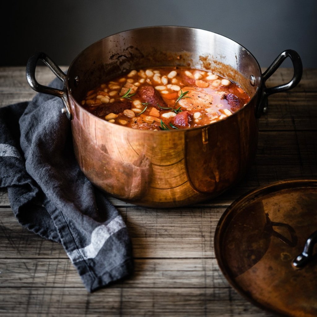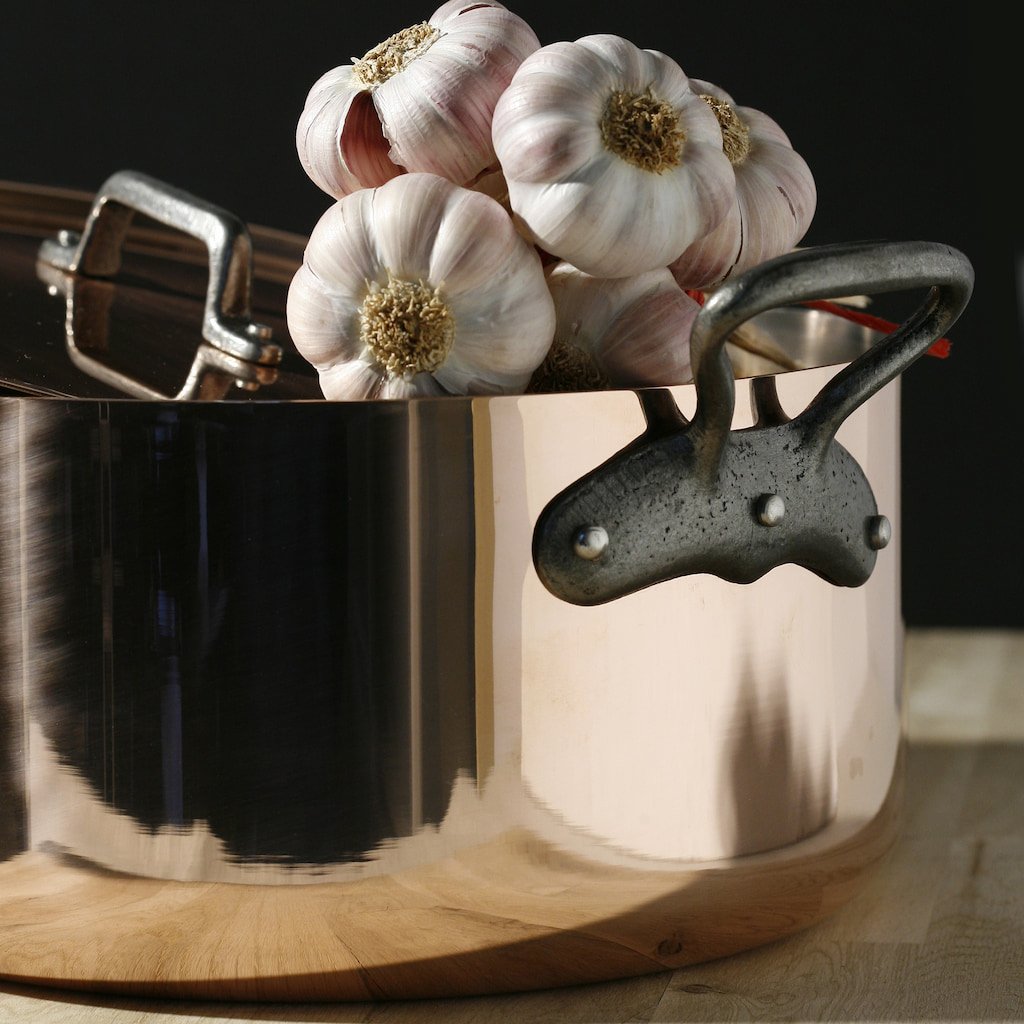 - traditionele koperen look gecombineerd met stevige gietijzeren handgrepen voor een authentiek Frans ontwerp