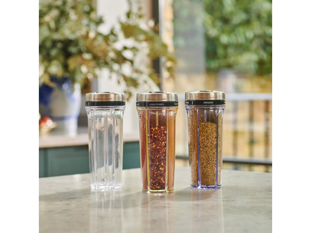 - de dispenser bespaart effectief ruimte op het aanrecht door vijf conventionele kruidenpotjes te vervangen in één compact pakket
