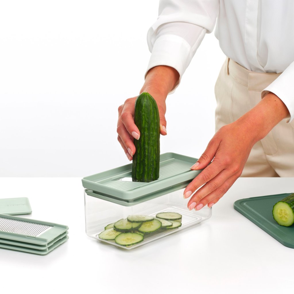 - mandoline Brabantia TASTY+ biedt een praktische oplossing voor het snijden en raspen van diverse soorten voedsel in één compacte set