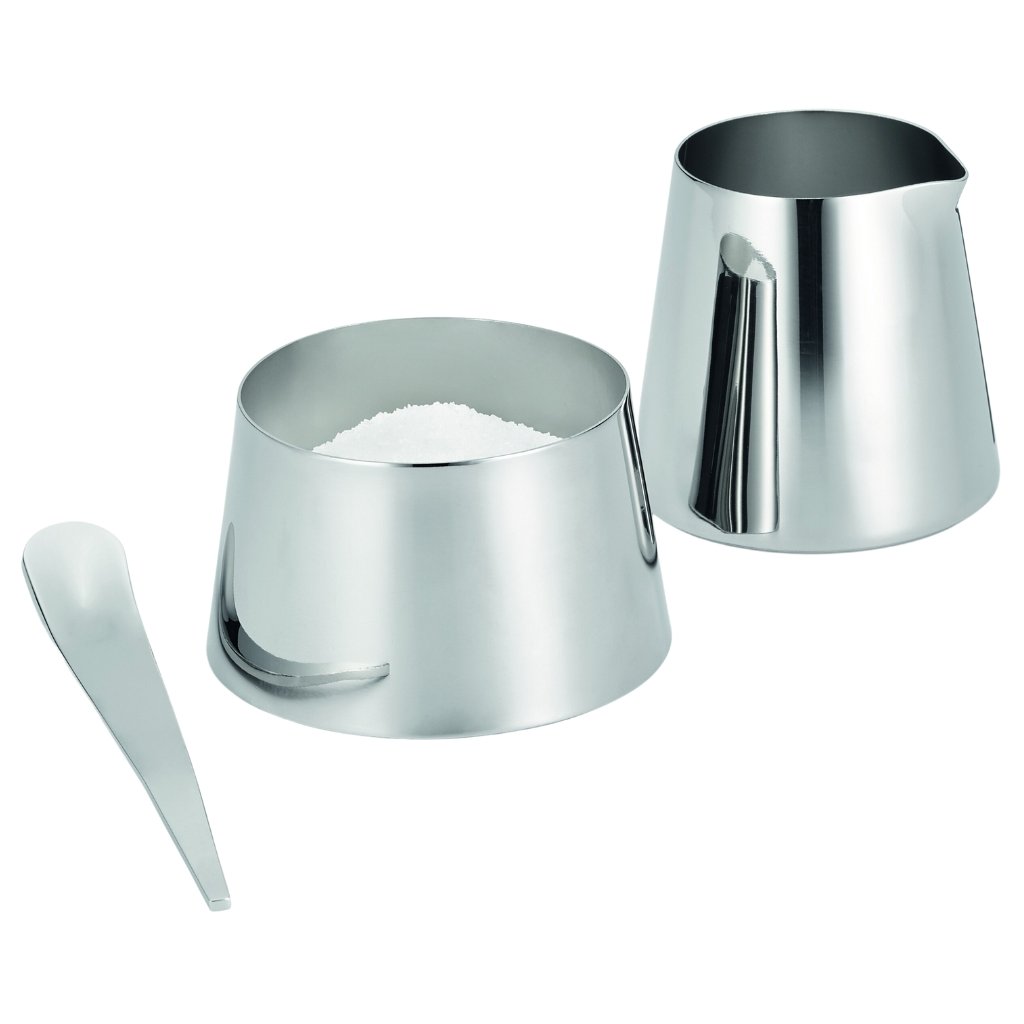 - moderne set bestaande uit een suikerpot, melkkannetje en lepel