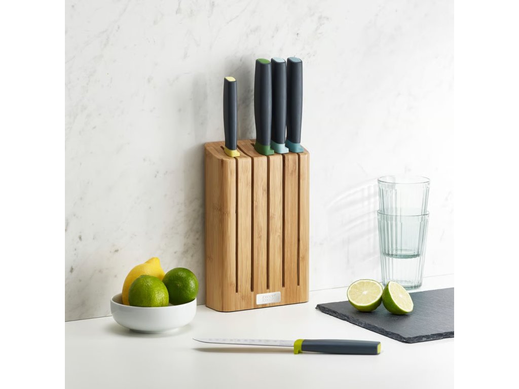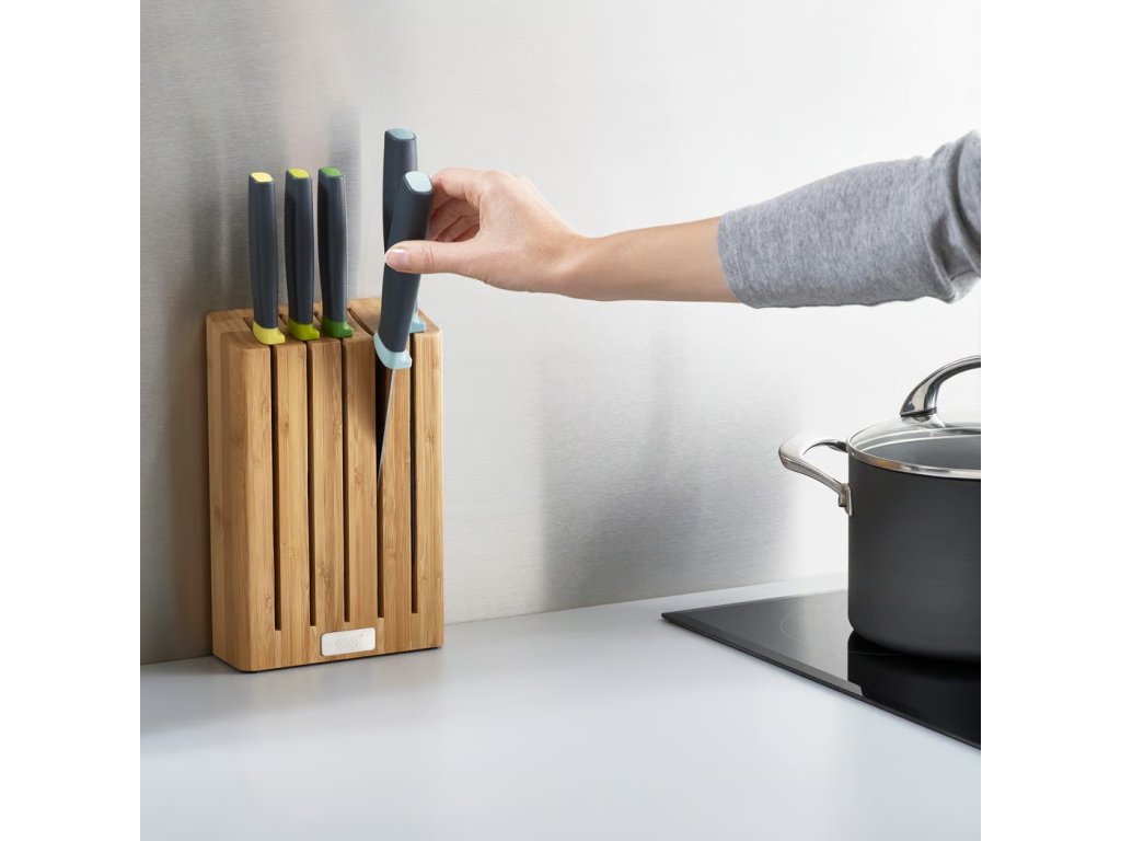 - magnetisch mechanisme om de messen in het blok te klemmen zorgt ervoor dat ze veilig opgeborgen kunnen worden