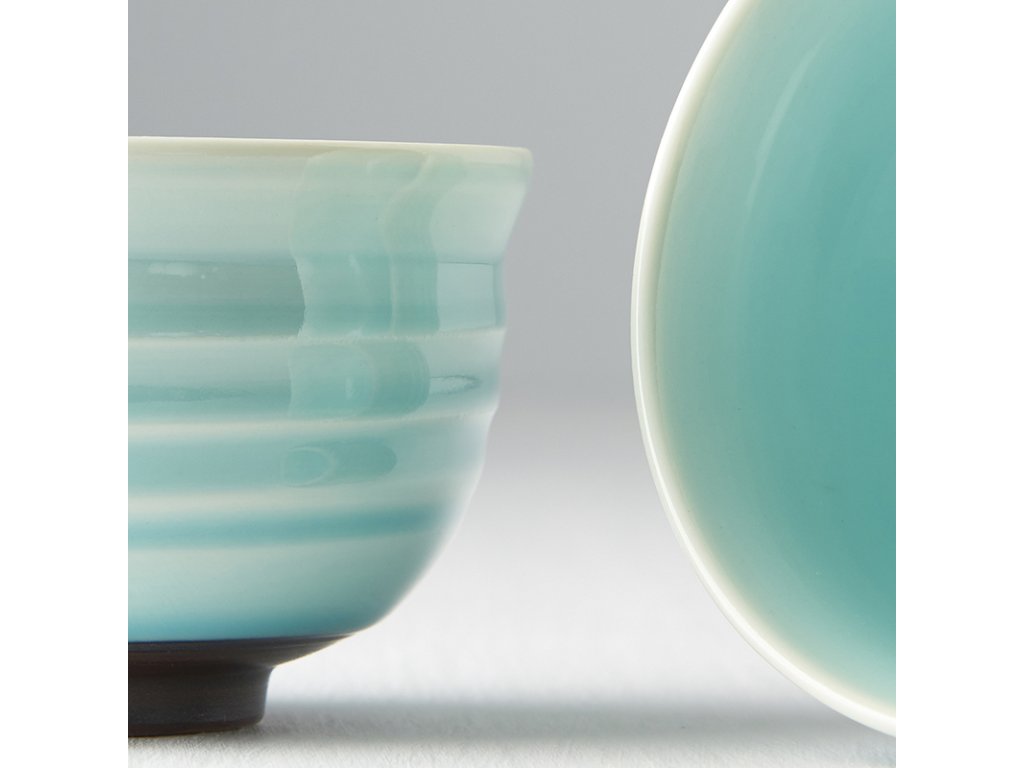 Deze theekom is mintkleurig met fijne decoratieve lijnen. De vorm van de kom komt overeen met de traditionele theekommen, die je net als de Japanners met beide handen aan je mond kunt zetten. Als je ook op zoek bent naar heerlijke thee, raden we je bijvoorbeeld de unieke Dragon Pearl thee aan.