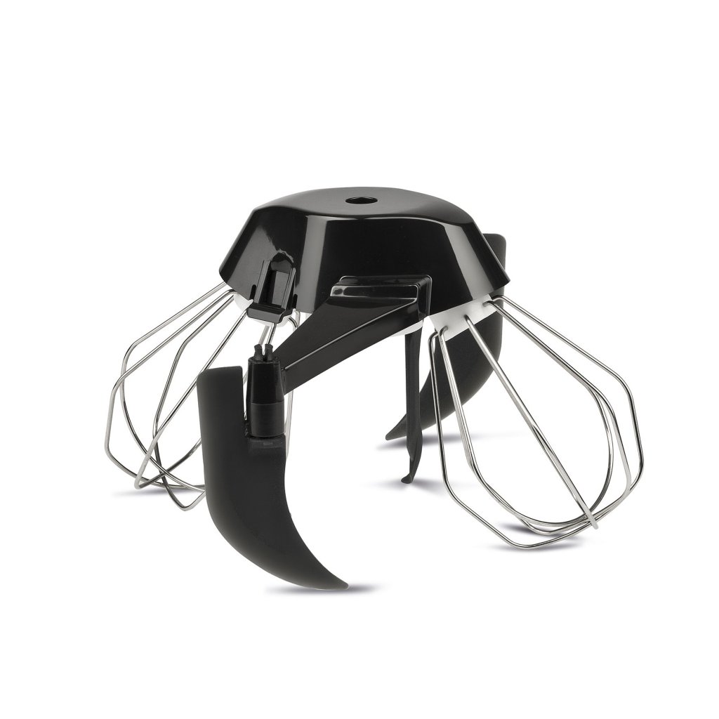 - De uitrusting omvat een dubbele roestvrijstalen garde, een dubbele deeghaak voor mixer en een dubbele mengopzetstuk