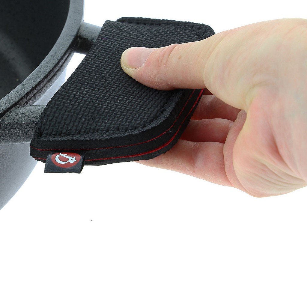 - een praktische oplossing voor iedereen die gietijzeren, koperen of stalen pannen zonder thermisch geĂŻsoleerde handgrepen gebruikt