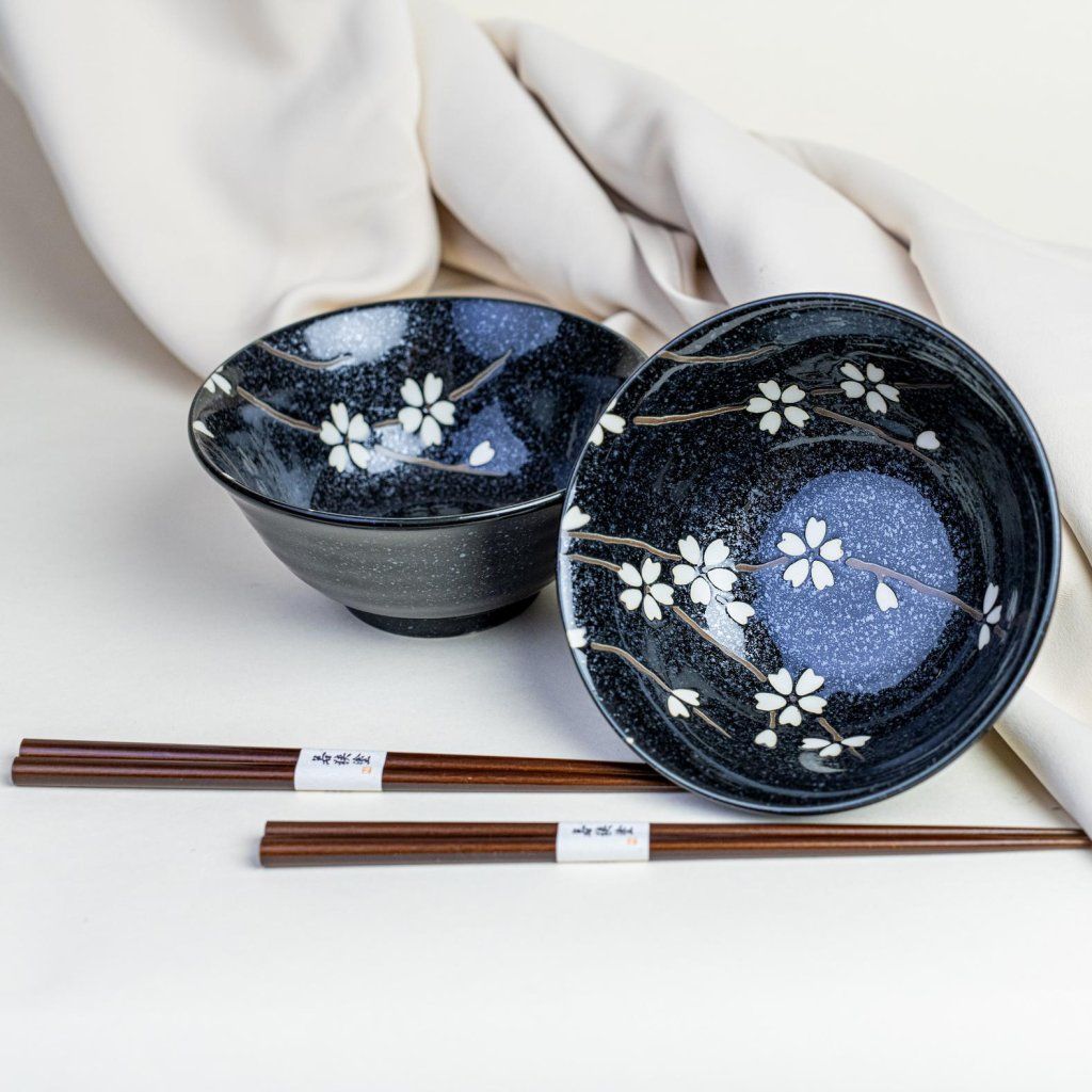 - Twee kommen en twee sets eetstokjes vormen de ideale combinatie voor gezellige momenten, waarbij je langzaam en met smaak van je maaltijd geniet.