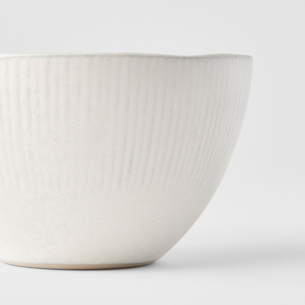 - De kom SNOW LEAF met een diameter van 13 cm en een inhoud van 300 ml brengt de zachtheid van een matte witte glazuur en een verticale structuur die lijkt op de stille impact van sneeuwvlokken.