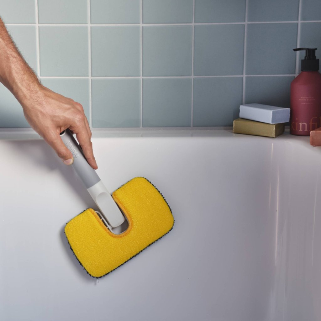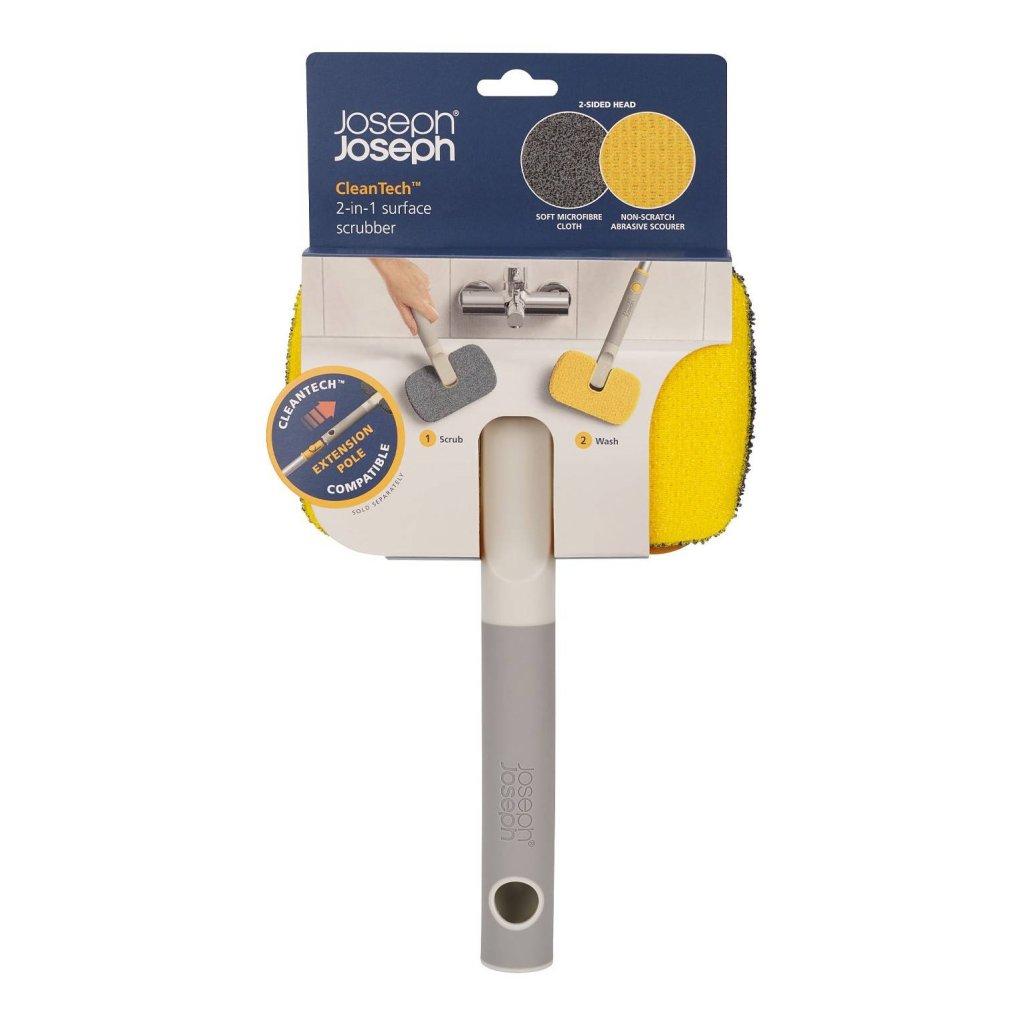 - De oppervlakteborstel Joseph Joseph CLEANTECH is een universeel hulpmiddel ontworpen voor het grondig en effectief reinigen van diverse badkamer- en keukenoppervlakken.
