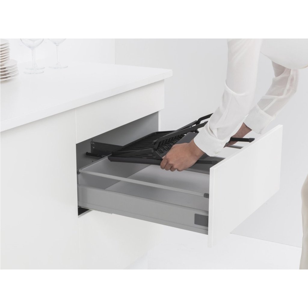 Het opvouwbare vaatdroogrek Brabantia SinkSide met lekbak houdt borden, potten, pannen en glazen perfect vast. Biedt plaats aan 13 borden of potten, pannen en glazen. De mand voor het drogen van bestek en serviesgoed is uitneembaar, zodat u de mand gemakkelijk kunt opvouwen en schoonmaken. Hij is mooi genoeg voor een vaste plaats in uw keuken, maar hij is ook heel draagbaar.