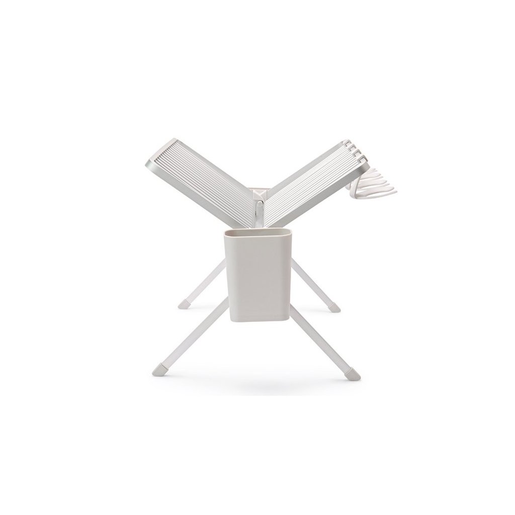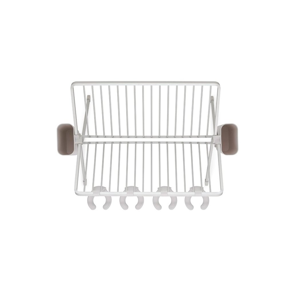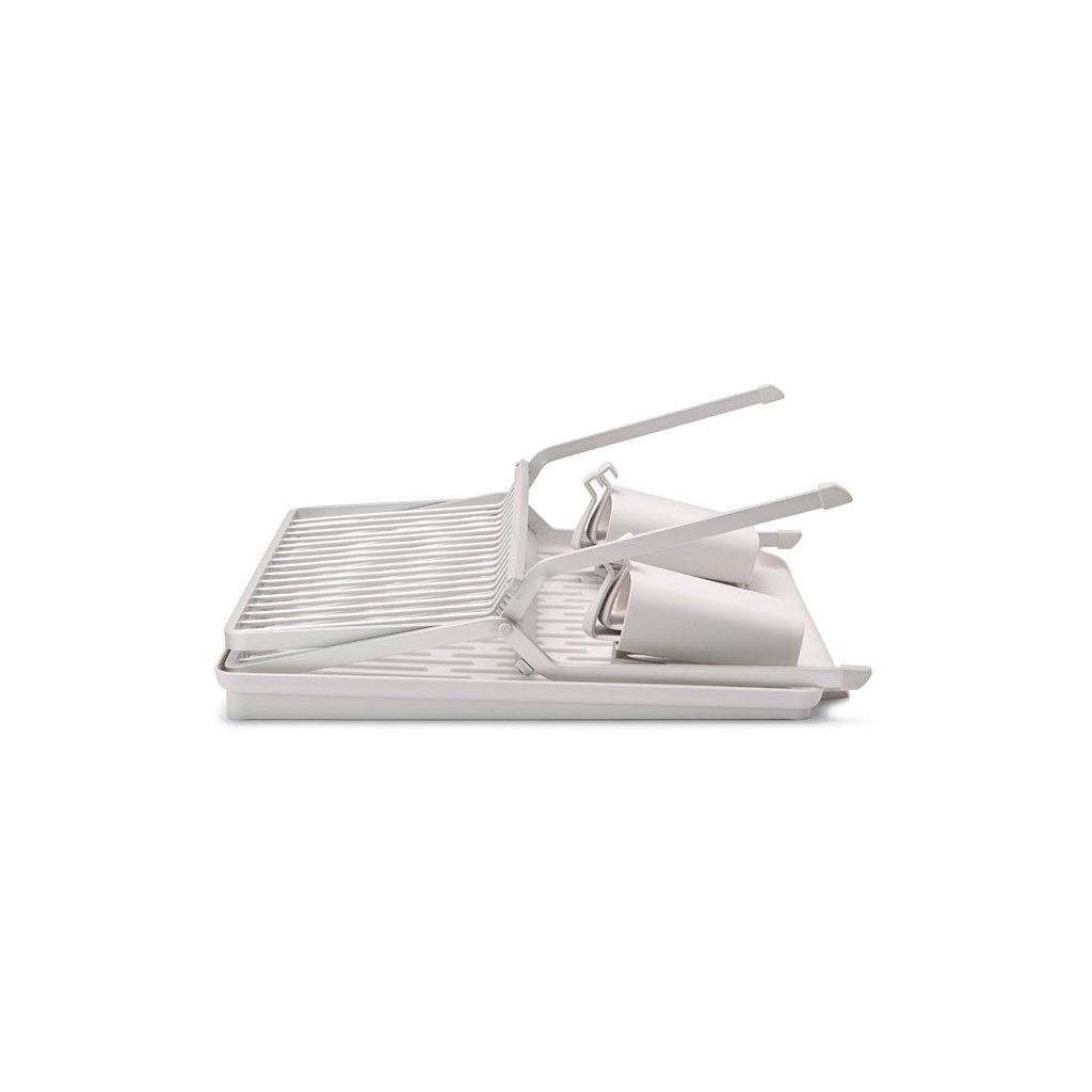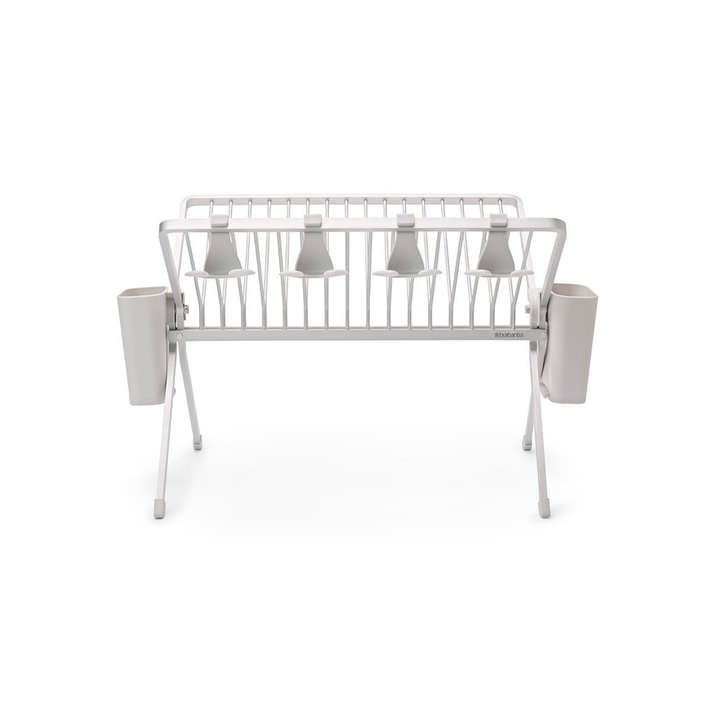 Het opvouwbare vaatdroogrek Brabantia SinkSide met lekbak houdt borden, potten, pannen en glazen perfect vast. Biedt plaats aan 17 borden of potten, pannen en glaswerk - inclusief delicate wijnglazen. De bakken voor het drogen van bestek en serviesgoed zijn uitneembaar, waardoor het gemakkelijk op te vouwen en op te bergen is. Een echt slimme standaard, mooi genoeg voor een vaste plaats in uw keuken.