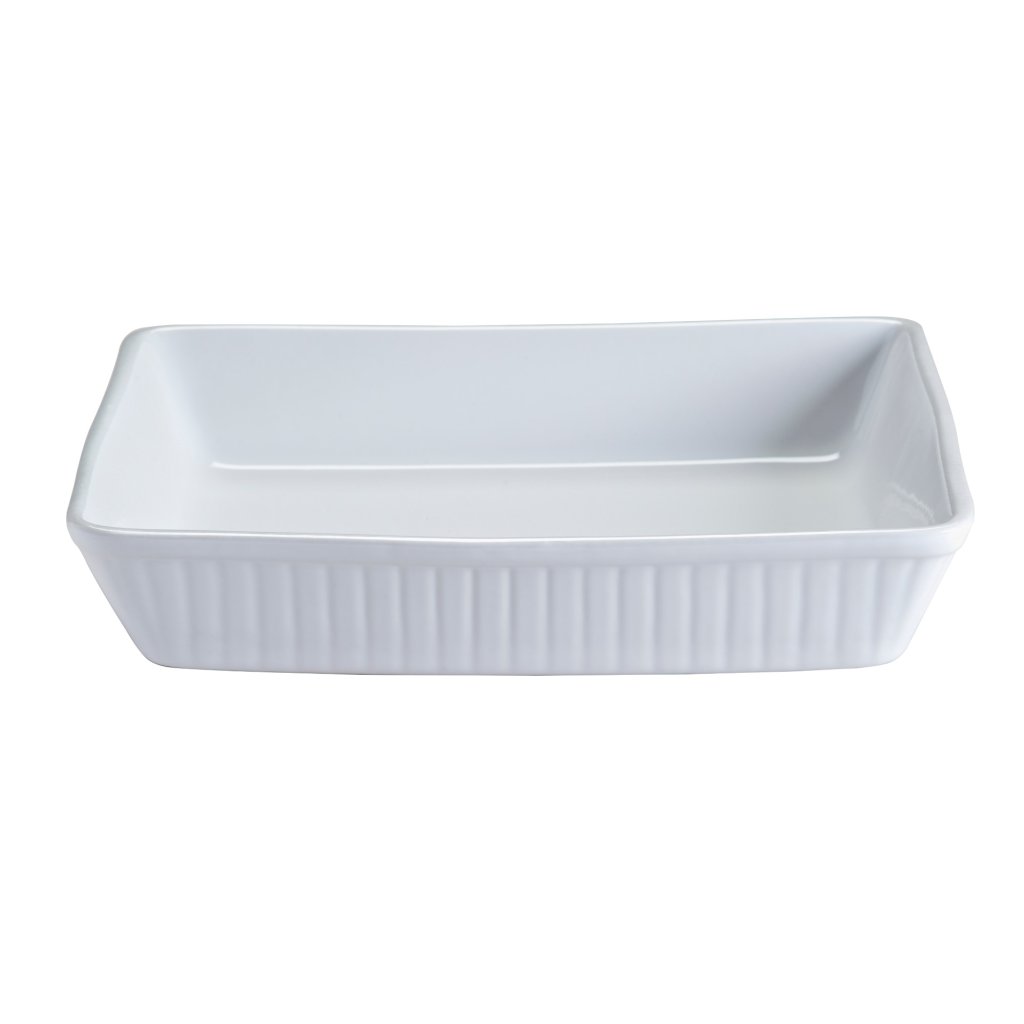 - De ruime rechthoekige ovenschaal met een lengte van 33 cm en een inhoud van 4 liter is ideaal voor het bereiden van familiemaaltijden zoals lasagne, gebraden vlees, gebakken pasta of geroosterde groenten.