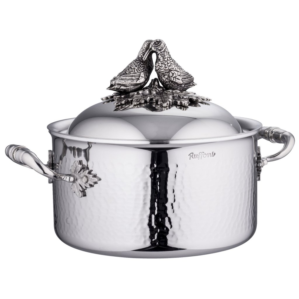 - massief roestvrijstalen deksel met een handvat in een prachtig decor, dat met de hand is gegoten in massief brons en verzilverd