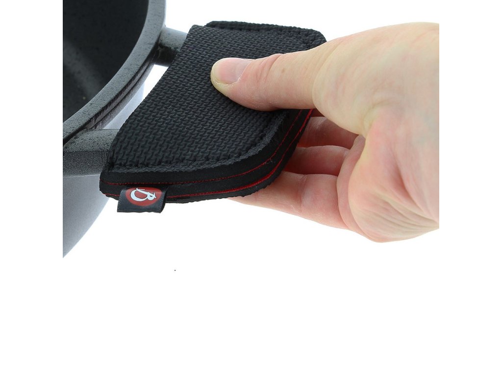- een praktische oplossing voor iedereen die gietijzeren, koperen of stalen pannen zonder thermisch geĂŻsoleerde handgrepen gebruikt