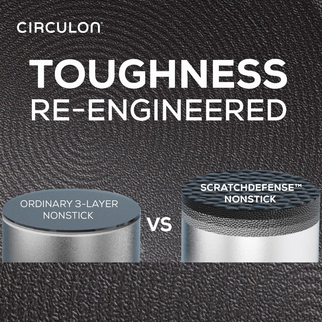 - set van 2 innovatieve antiaanbakpannen Circulon SCRATCHDEFENSE A1 biedt revolutionaire krasbestendigheid en extreem lange levensduur