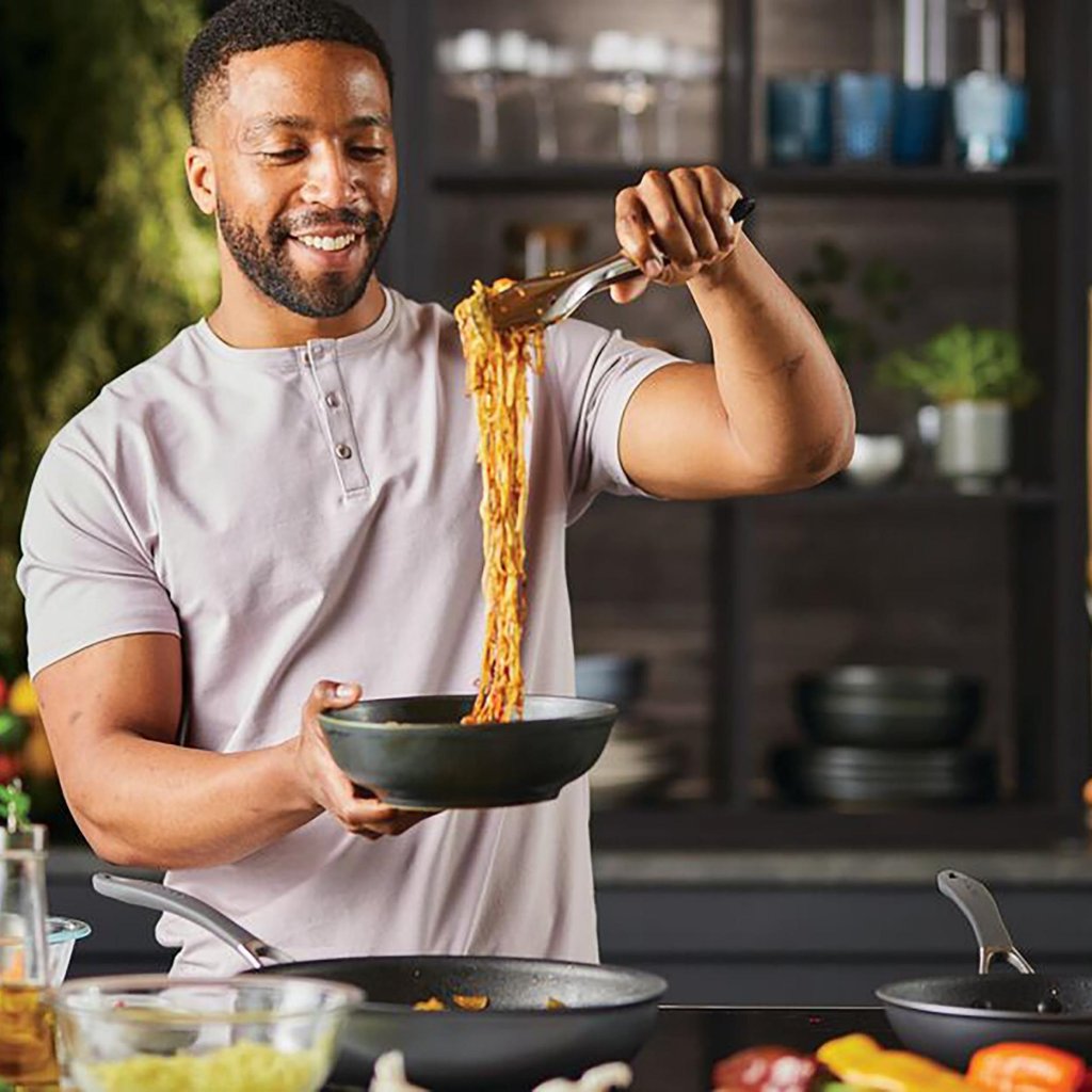 - de moderne grafietgrijze afwerking geeft de pannen een elegante look die in elke keuken past