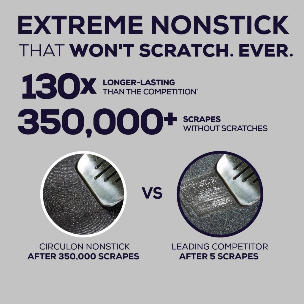 - speciale ScratchDefense-technologie, met duurzaamheid van luchtvaartkwaliteit, voorkomt krassen, afbladderen en vastplakken van voedsel