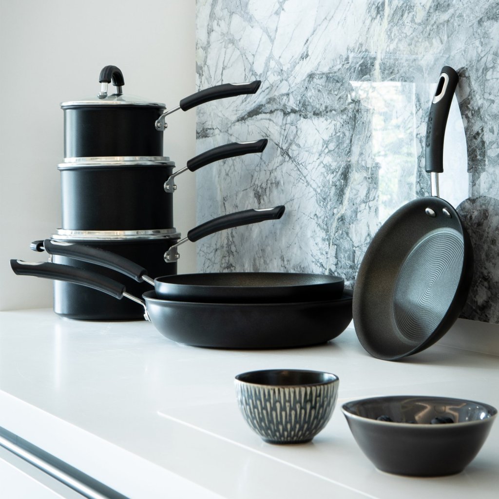 - het moderne ontwerp met een matte afwerking geeft de pannen een strakke uitstraling en professionele prestaties die passen in elke keuken