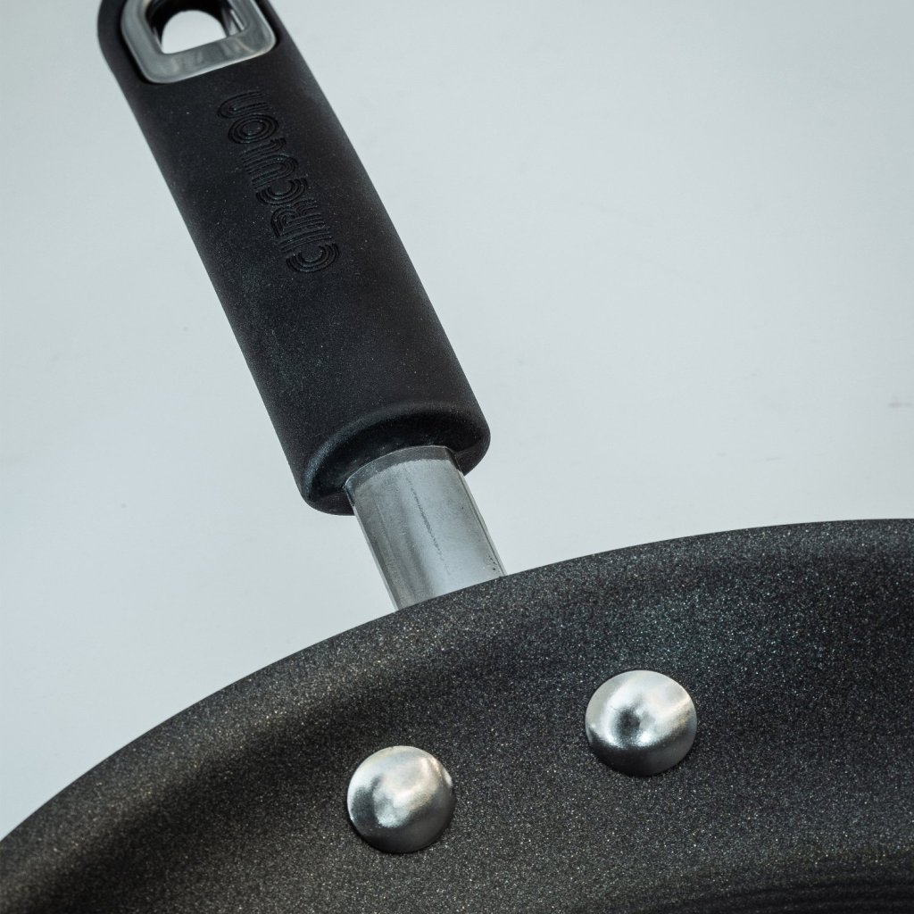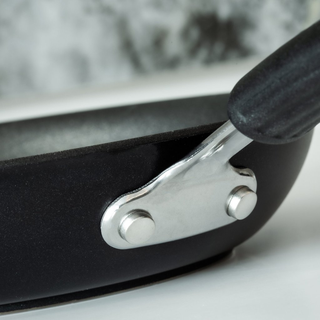 - extreme krasbestendigheid maakt de pannen geschikt voor gebruik met metalen keukengerei, waardoor ze veelzijdiger en duurzamer zijn