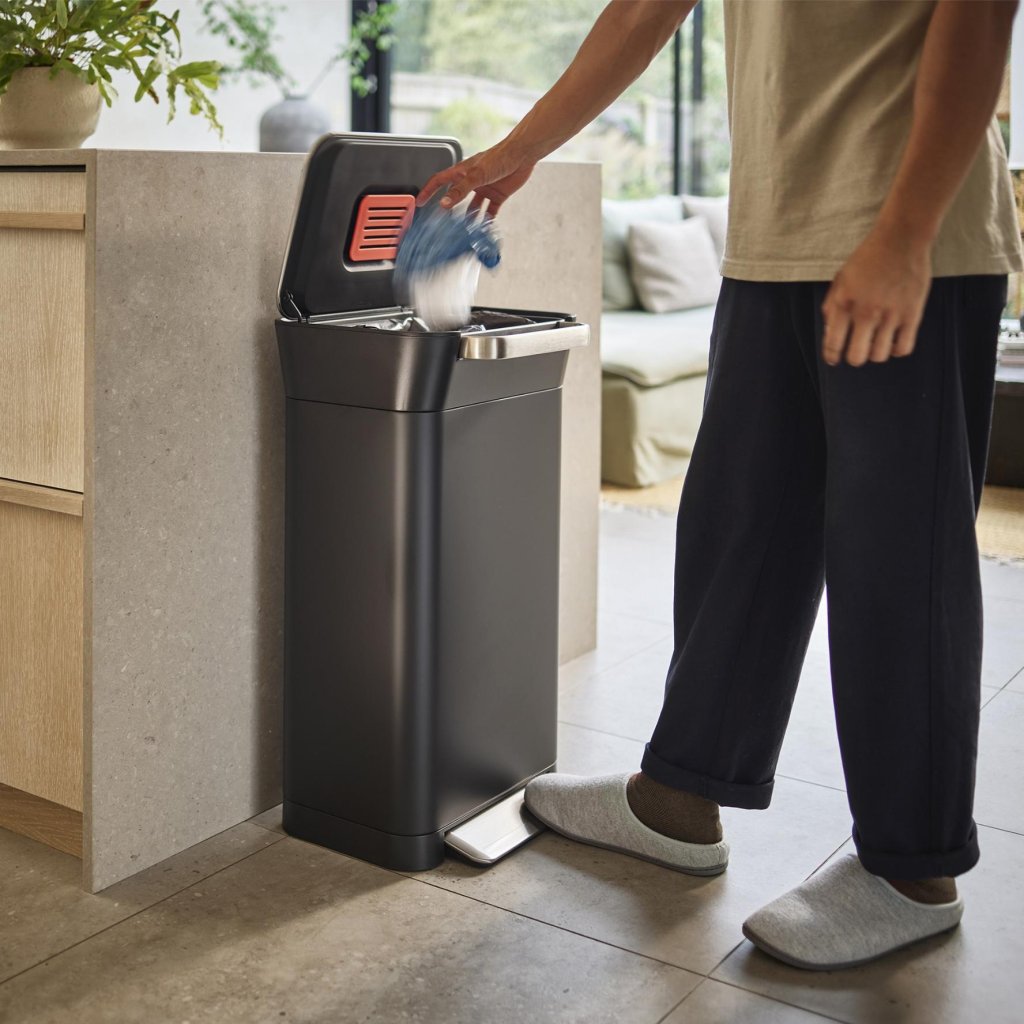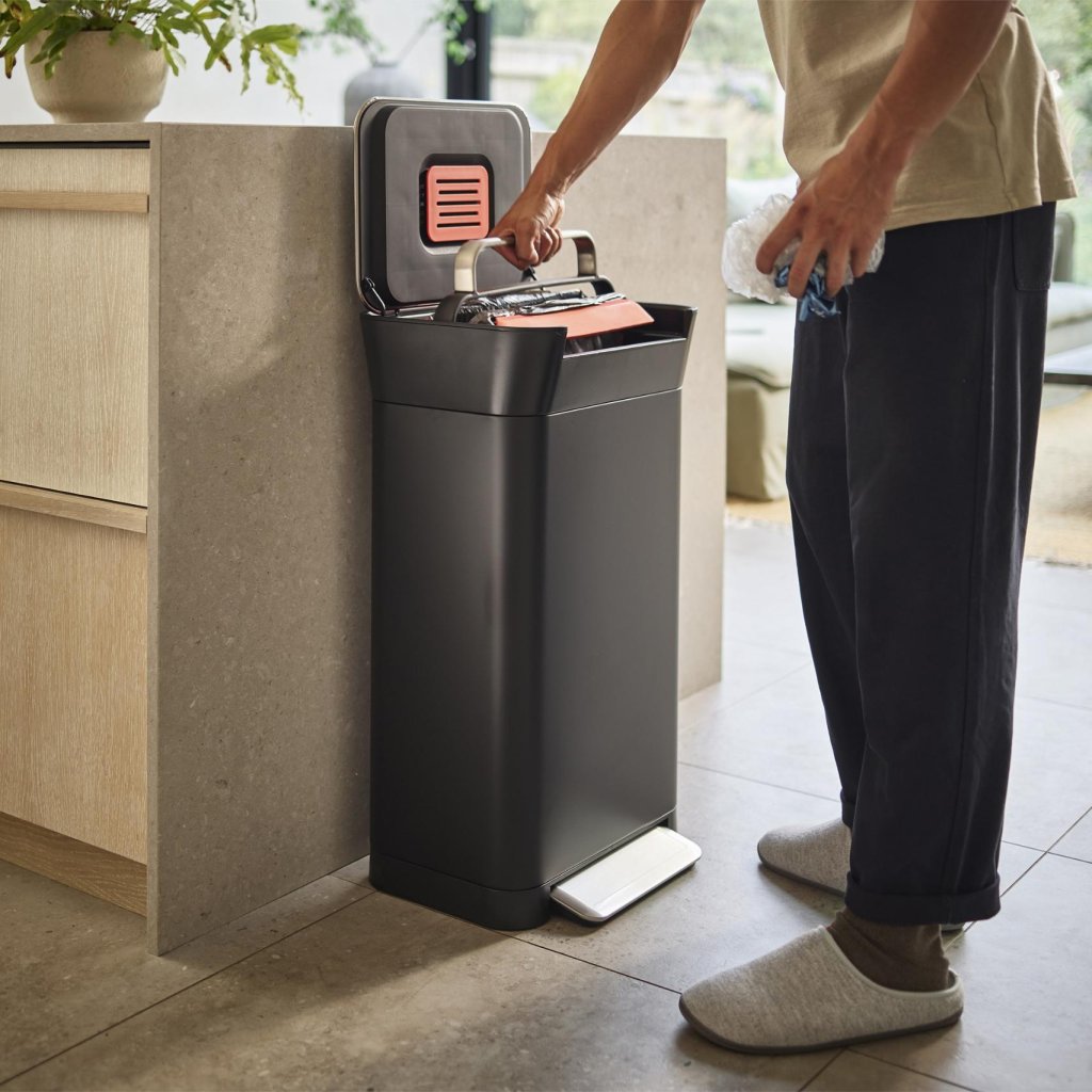 - De prullenbak is compatibel met Joseph Joseph IW4-zakken, die zijn ontworpen om precies bij de constructie te passen.