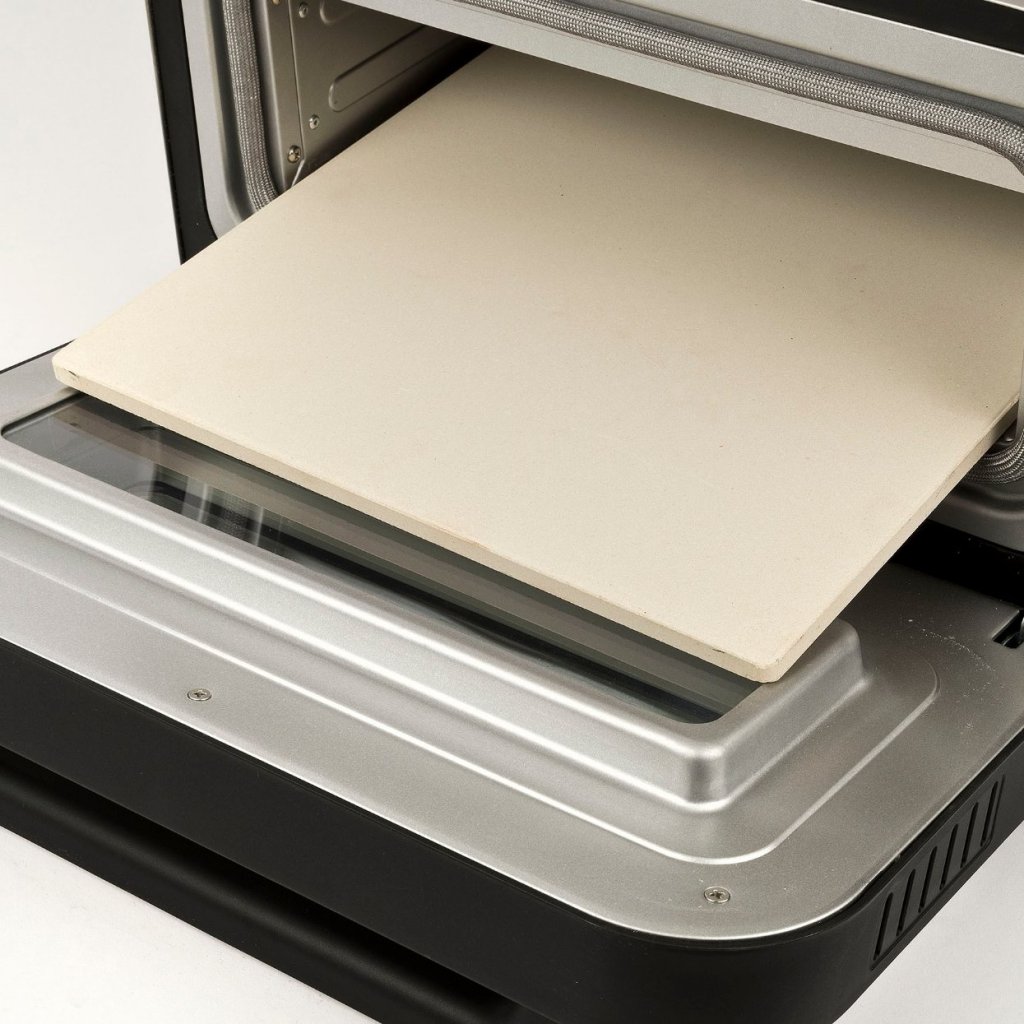 - de combinatie van hoge temperatuur tot 450 °C en vuurvaste steen zorgt voor gelijkmatig bakken van het deeg zonder uitdrogen