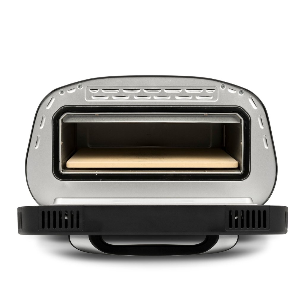 - de combinatie van hoge temperatuur tot 430 °C en vuurvaste steen zorgt voor gelijkmatig en snel bakken zonder het deeg uit te drogen