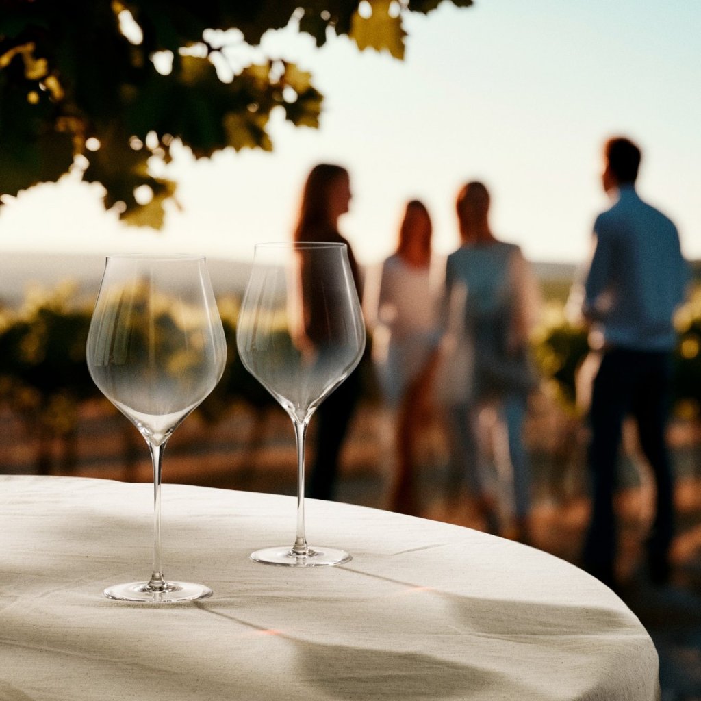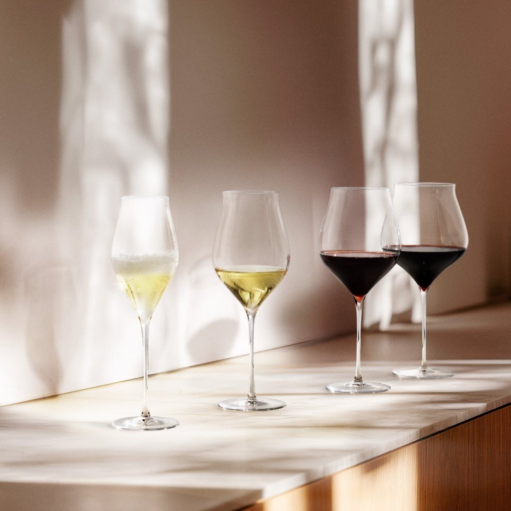 - de fijne wanden van het heldere glas onderstrepen de luxueuze uitstraling en versterken visueel de kleur van de wijn
