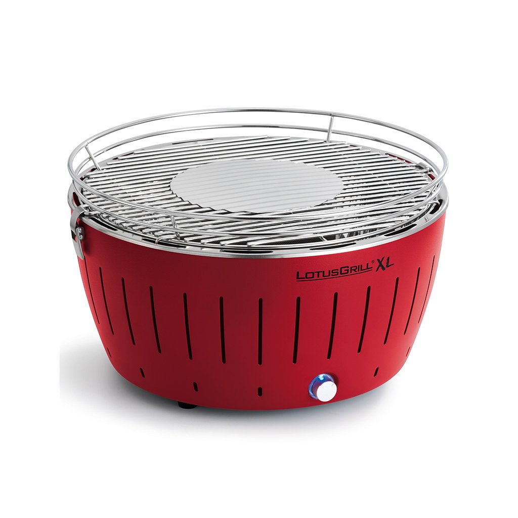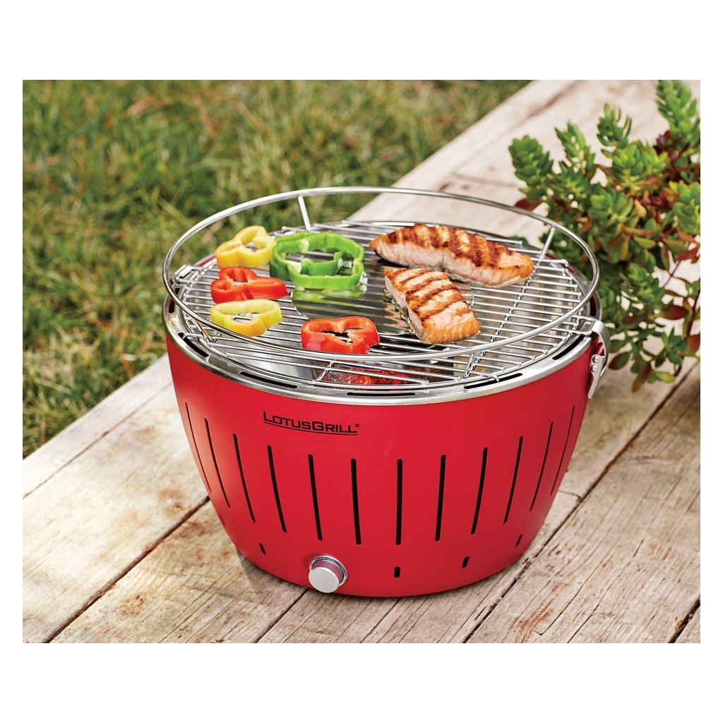 de LotusGrill XL is een rookvrije houtskoolgrill die kan worden gebruikt in de tuin, op het terras of op het balkon. De grill heeft een traploze temperatuurregeling, een laag houtskoolverbruik (met 180 g houtskool kun je ongeveer 45 - 60 minuten werken), is zeer eenvoudig in gebruik en de bereiding gaat echt snel. De grill warmt in 2 - 3 minuten op dankzij de stille ventilator, die ervoor zorgt dat de kolen gelijkmatig opwarmen. Tijdens het grillen druipt het vet in een speciale bak. Met deze oplossing maakt de LotusGrill gezonder grillen mogelijk zonder geur, zonder rook en zonder schadelijke stoffen. Het grilloppervlak van 40,5 cm is groot genoeg voor maximaal 10 personen.