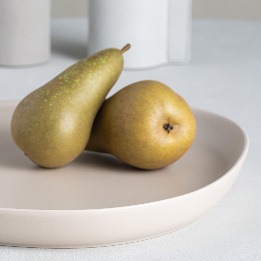 - de neutrale zandkleur harmonieert met verschillende stijlen decor en laat de kleuren van het geserveerde eten eruit springen