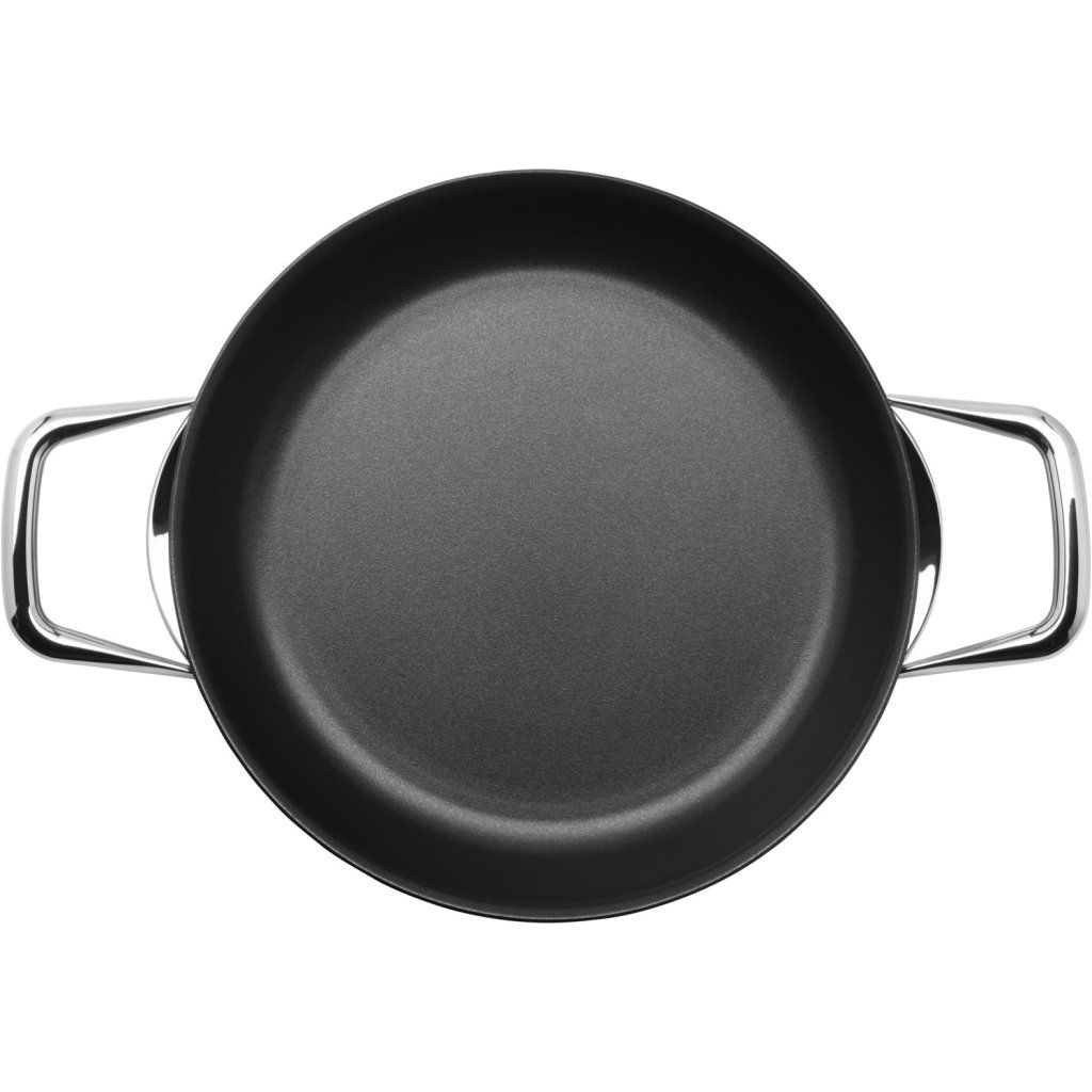 De pan is ook voorzien van ergonomisch gevormde roestvrijstalen handgrepen die het niet erg vinden om in de oven gebruikt te worden. Het is geschikt voor alle soorten kookplaten, inclusief inductie, en is vaatwasmachinebestendig.