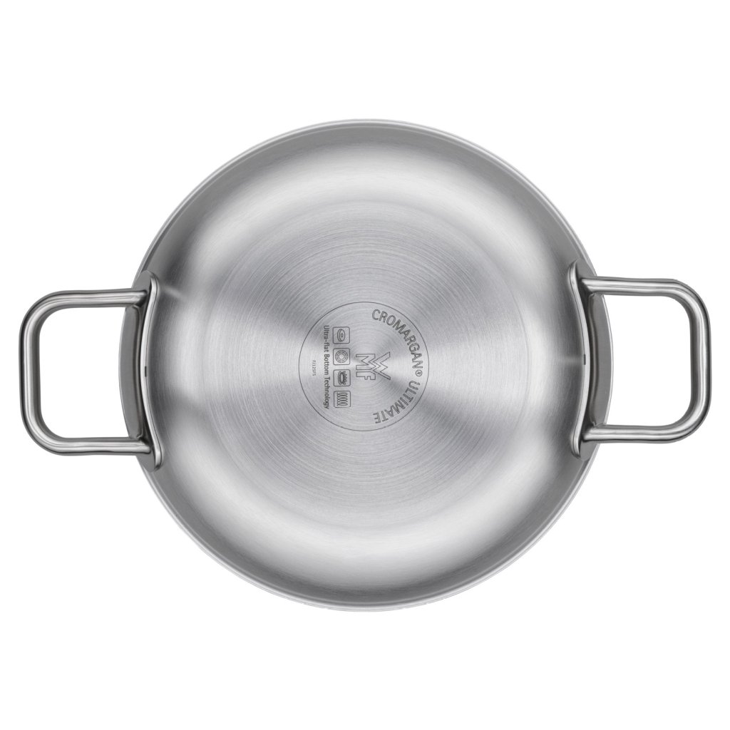 - De gepatenteerde bodem is 80% vlakker dan pannen WMF PROFI, wat bijdraagt aan een gelijkmatige verdeling van warmte en olie tijdens het koken