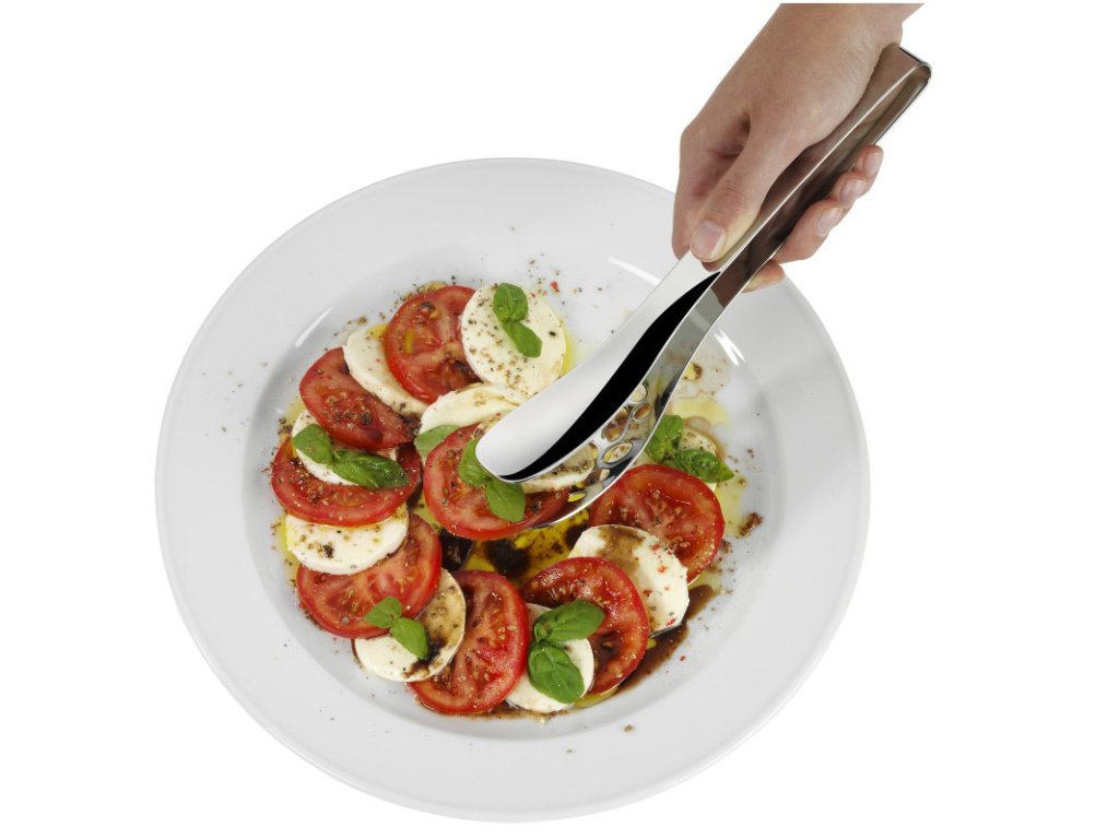Nuova geperforeerde serveertangen zijn geschikt voor koken en serveren. Het ingenieuze ontwerp zorgt voor een comfortabele bediening. Dankzij het brede uiteinde is hij geschikt voor het serveren van frites, noedels, asperges, salade, groenten en vis. Bij het koken zult u ze vooral waarderen bij het draaien van vlees op de grill of het braden in een braadslee.