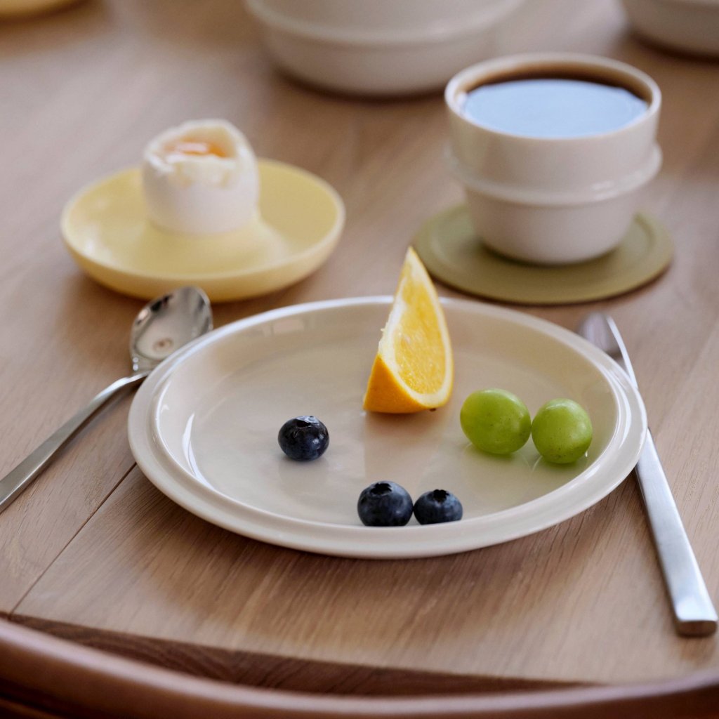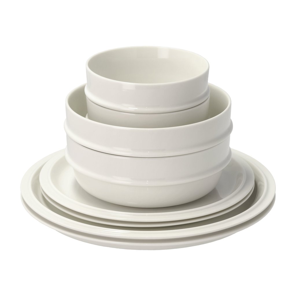 - de set bestaat uit twee maten borden en twee soorten kommen om een harmonieuze en samenhangende indruk te maken op elke tafel